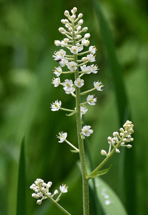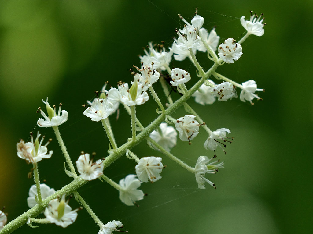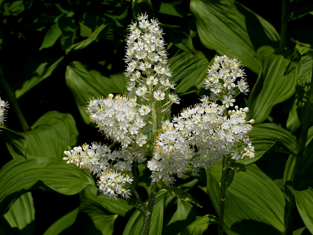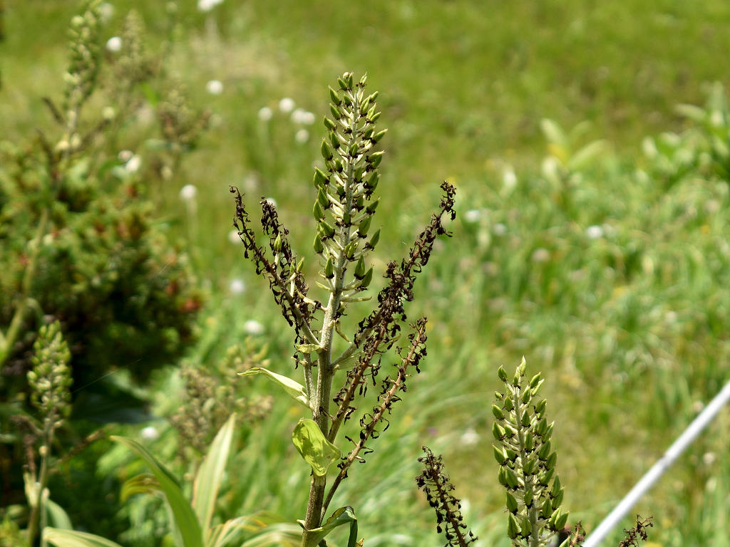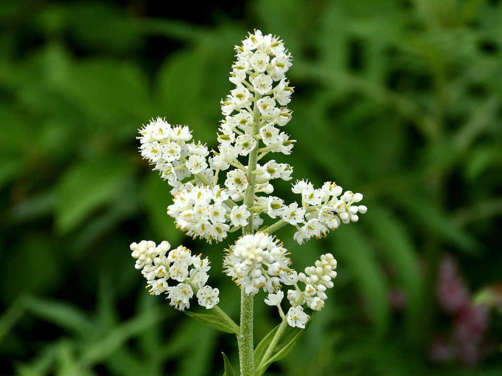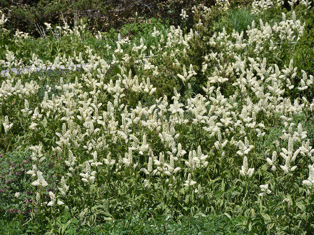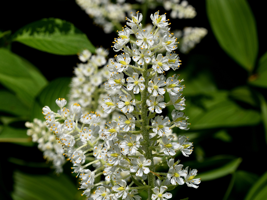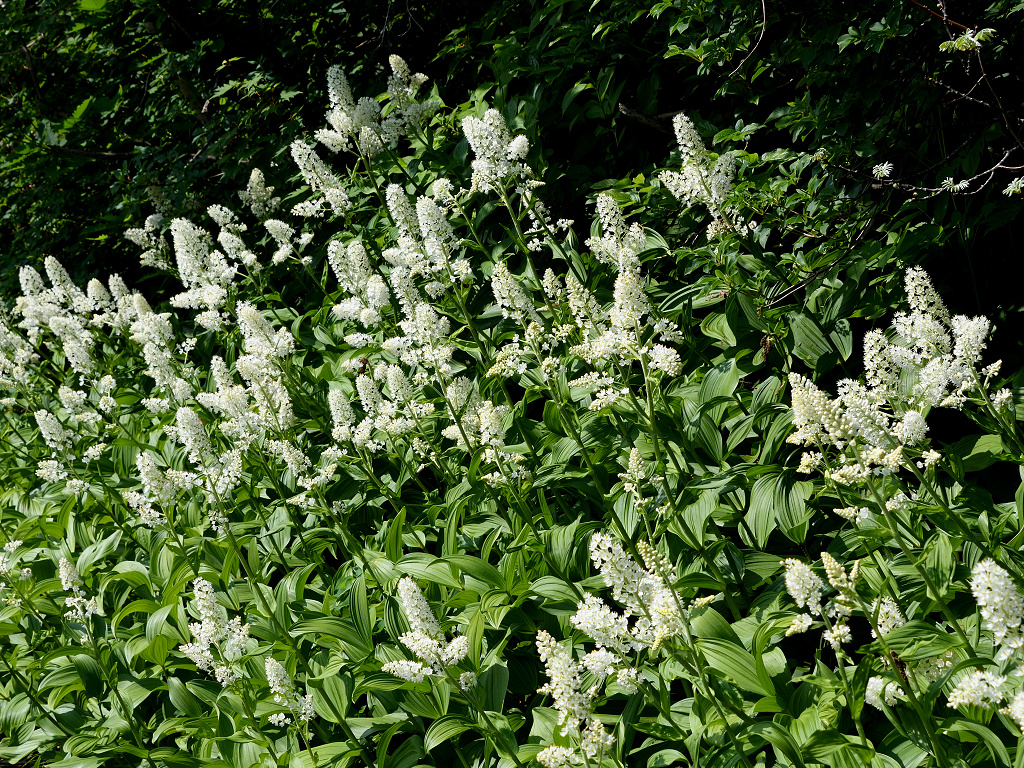 高さ1m程度にもなる花茎 バイケイソウの花やや緑かかっているが本種は白い。また花びらが丸みがあり梅の花のようなのがコバイケイソウ、花びらが尖がってるこの花がバイケイソウ