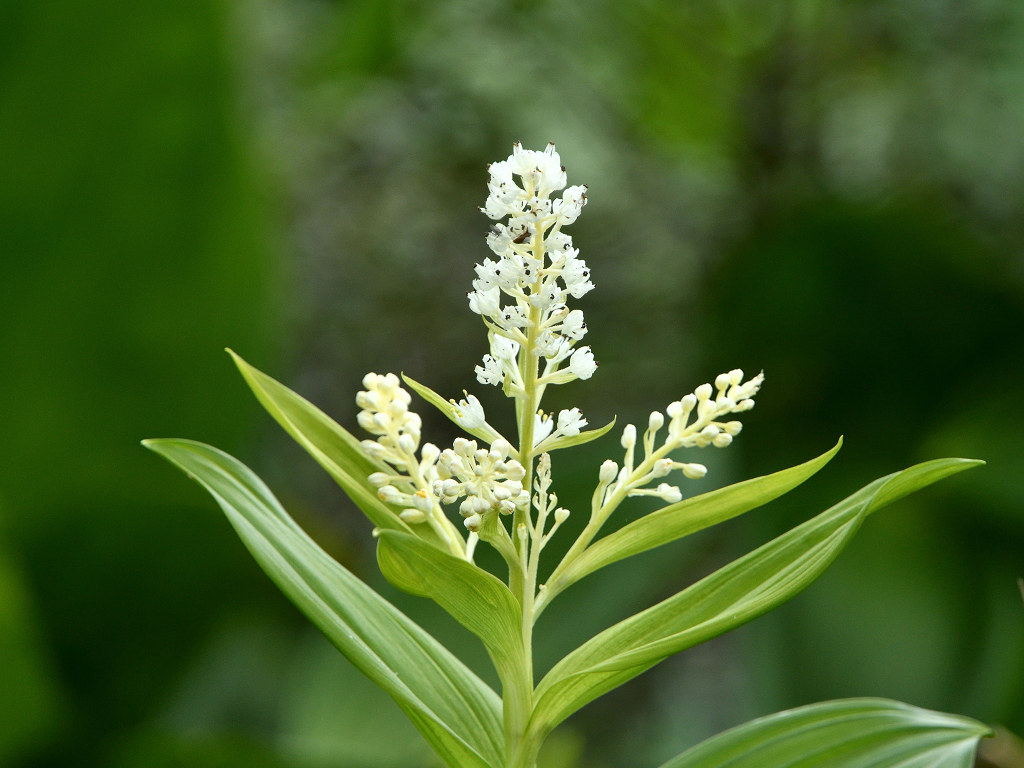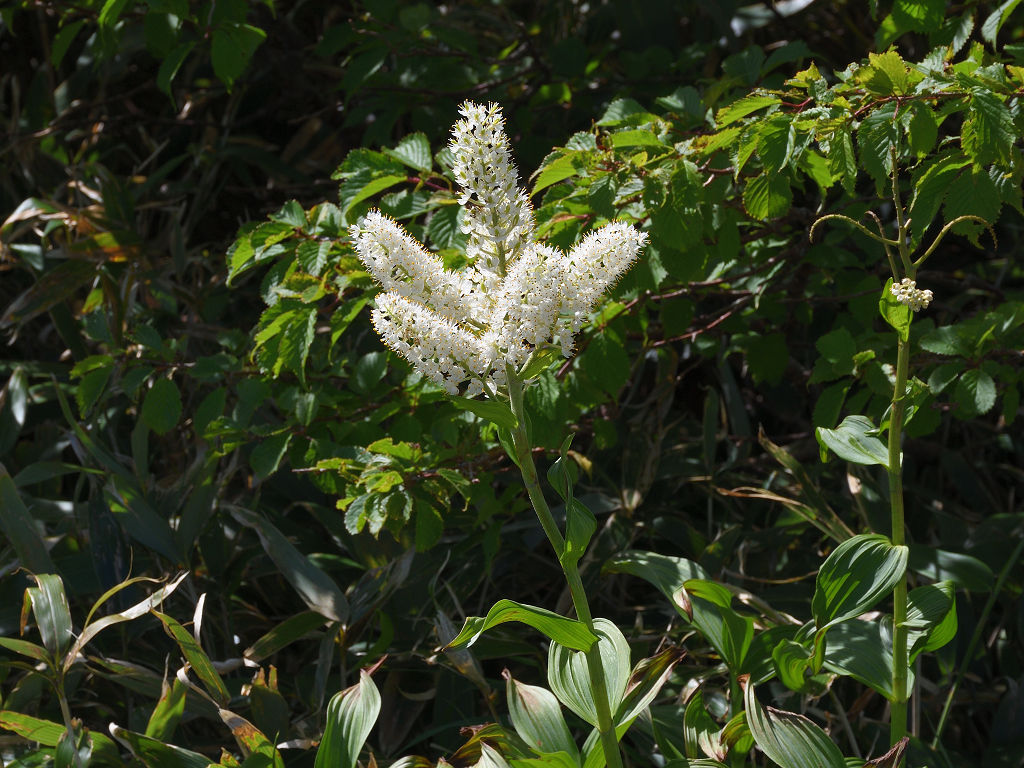 バイケイソウの名は花が梅、葉がケイランに似ていることより付いた名で、その小型なので「コ」がつく