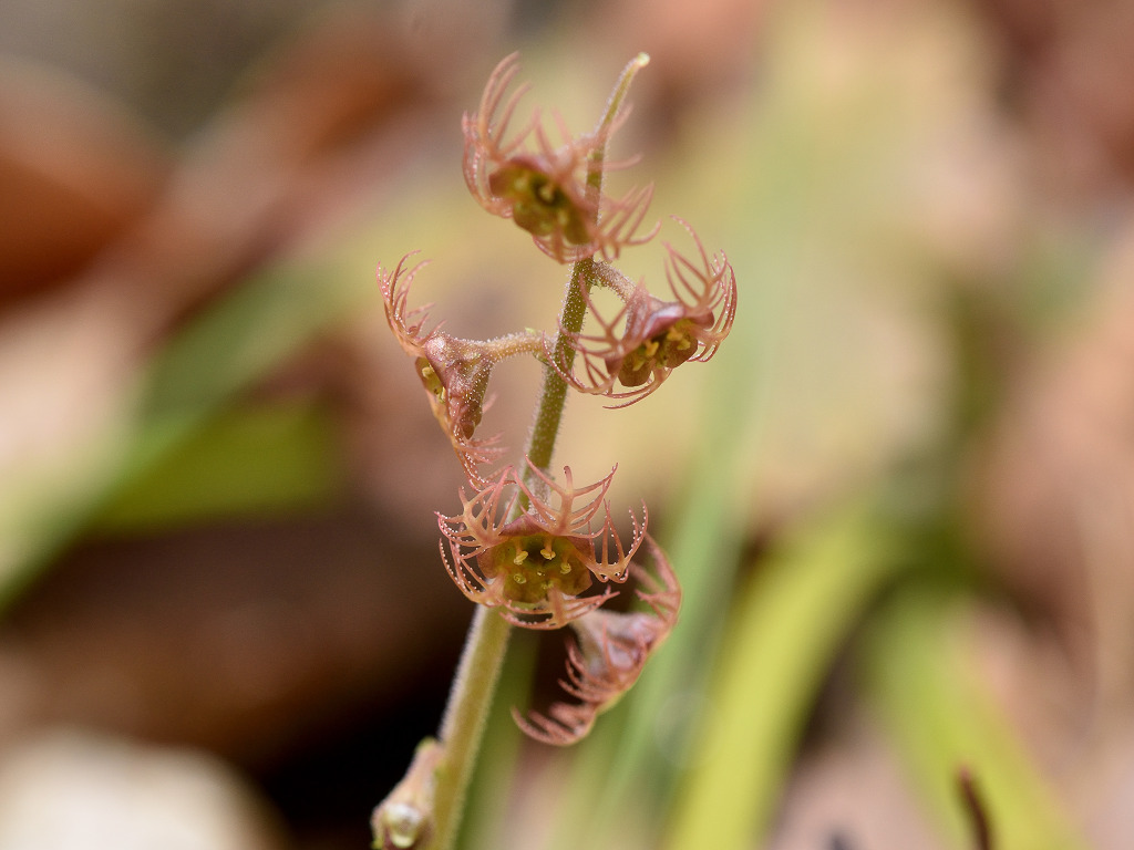 花は小さくラッパ形 花弁は魚の骨のような形