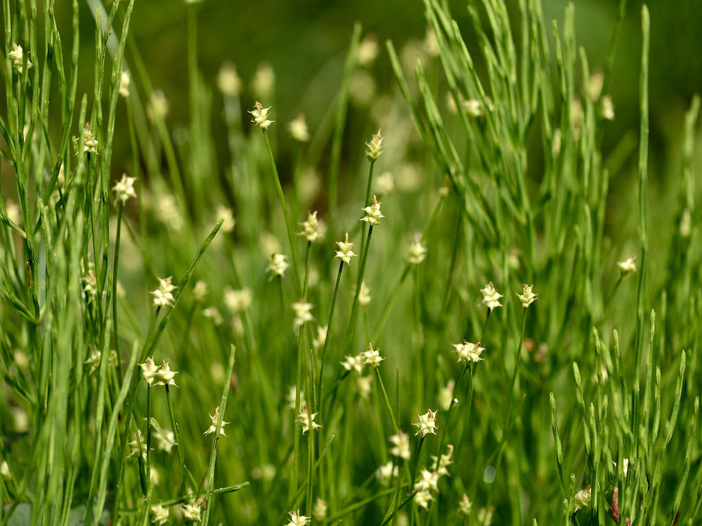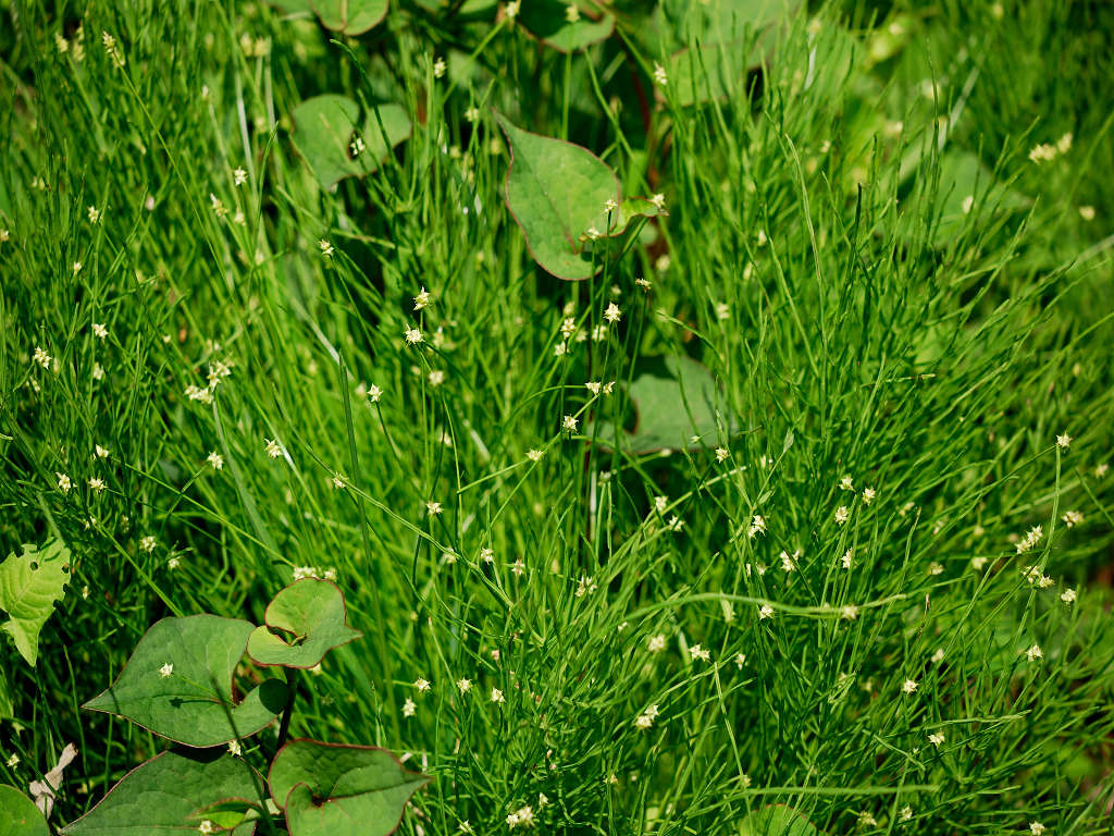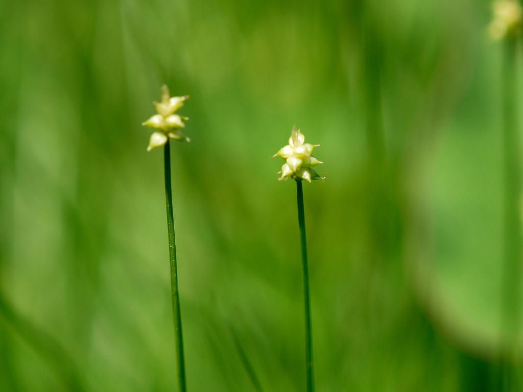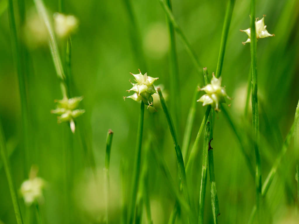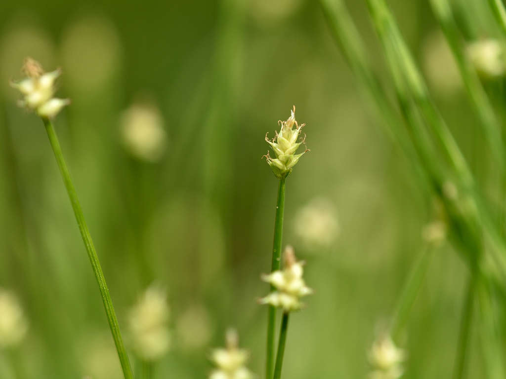 葉が細く幅1oほどで鮮やかな緑色です。 小穂は1個が頂生し大きさは3-5o、 上部にきわめて短いする雄性花がある