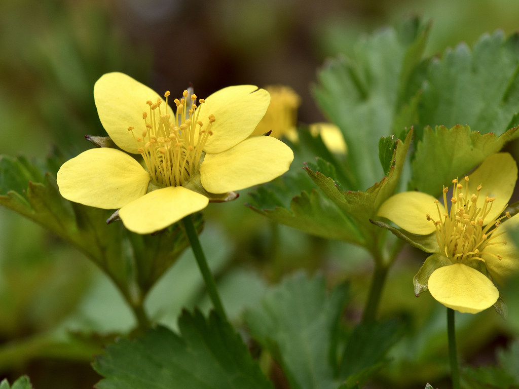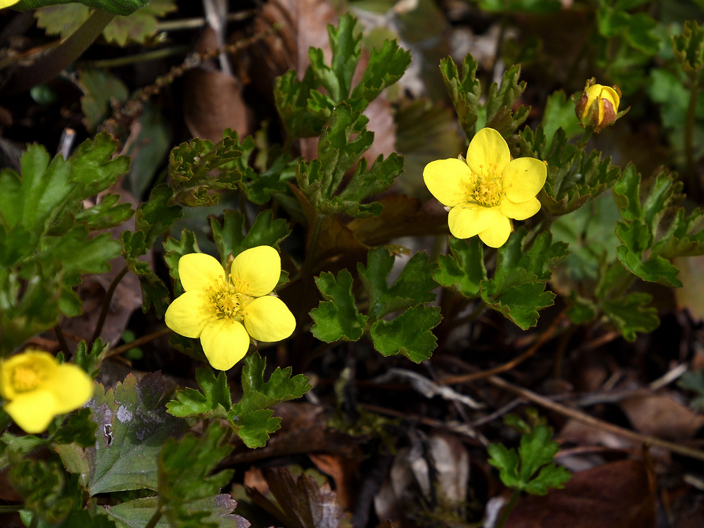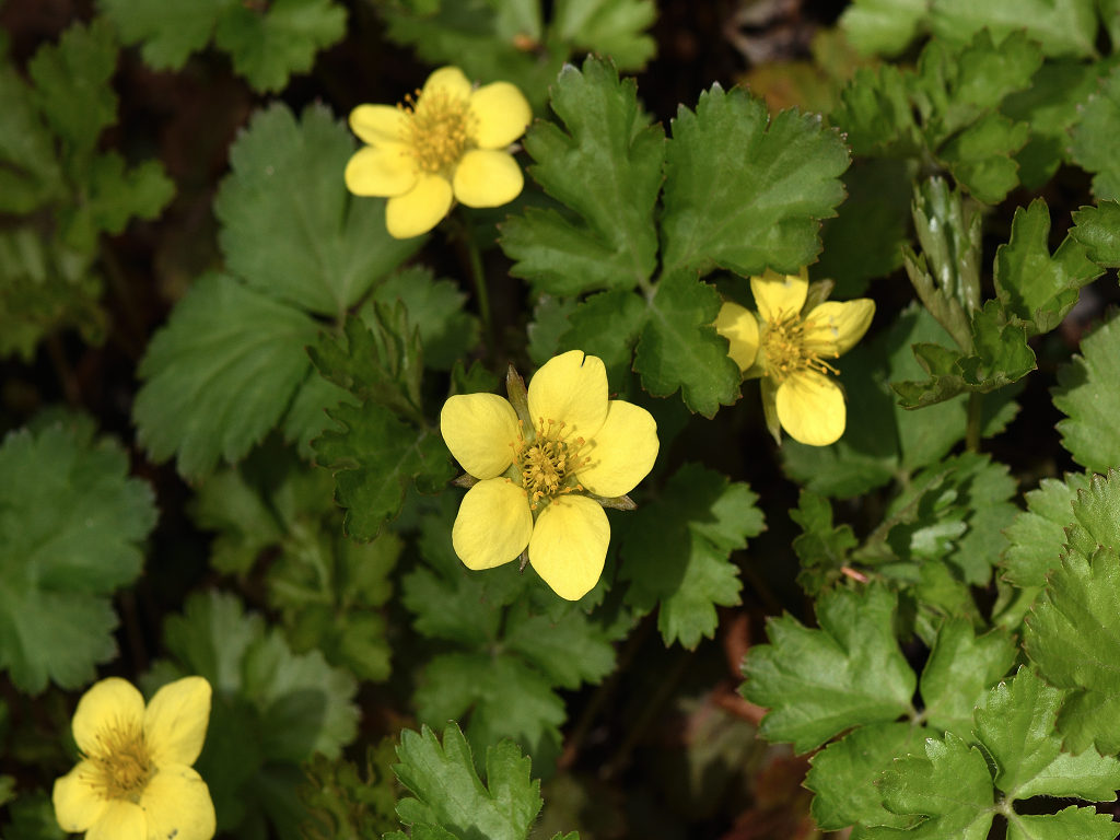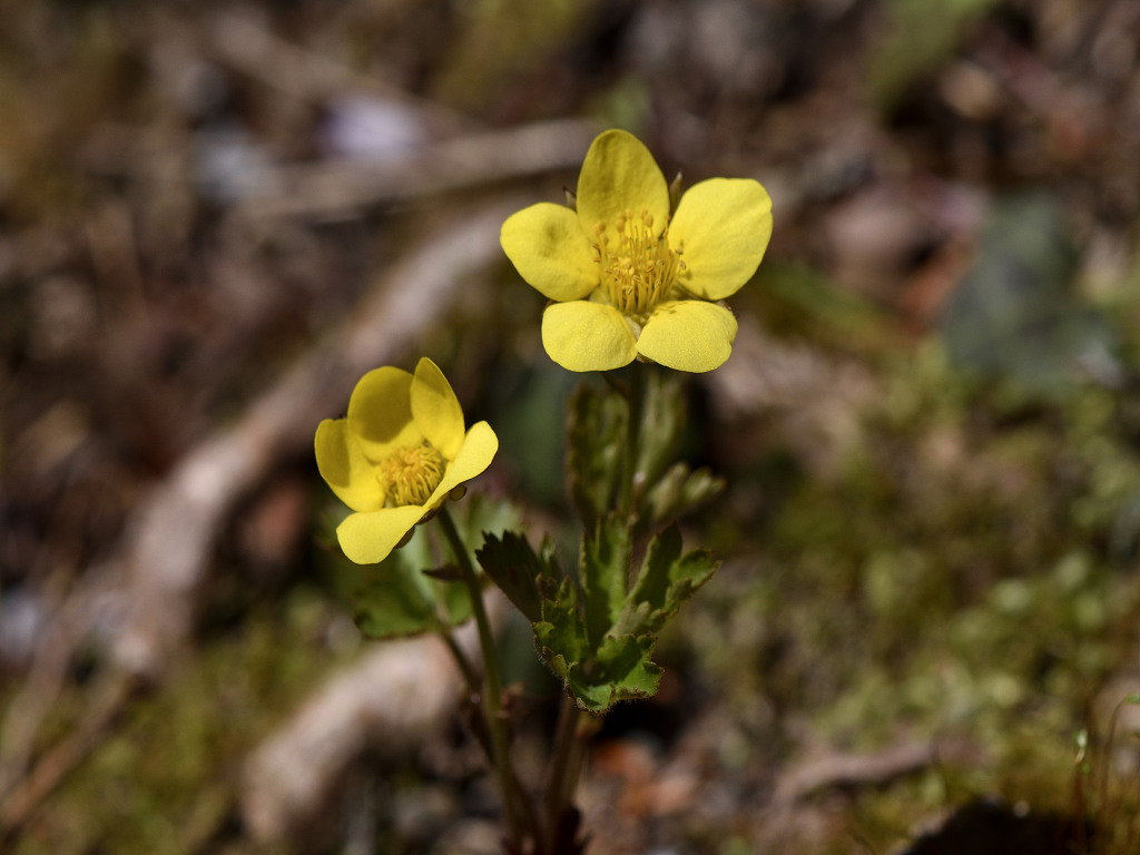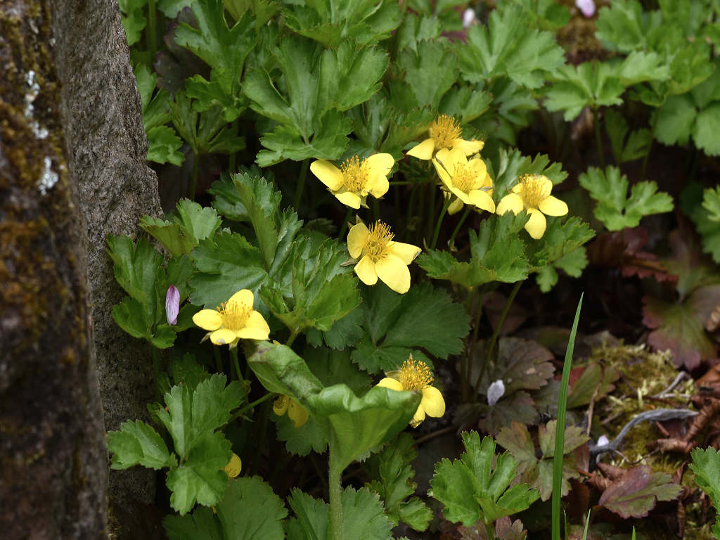 花は黄色 梅の花に似ている 「キンバイソウ」より小形なのでコキンバイ