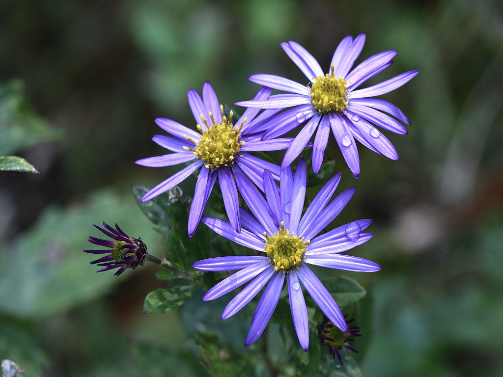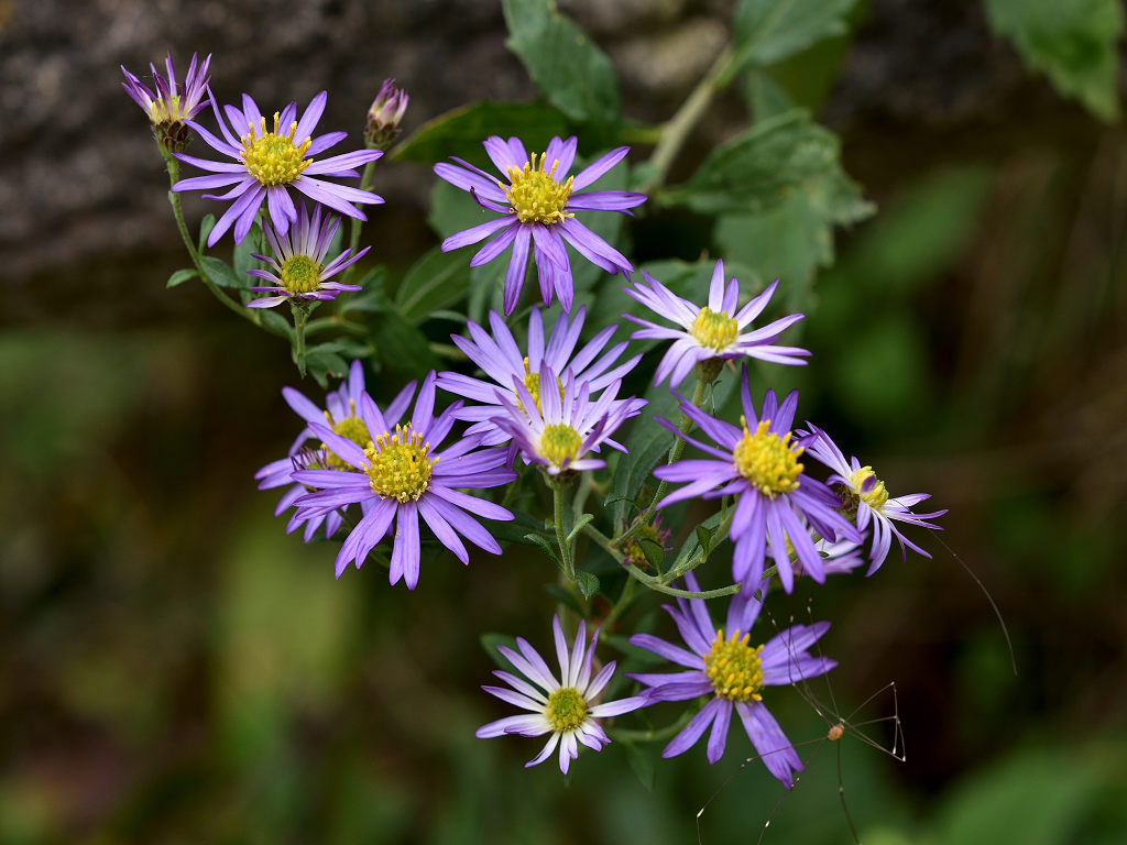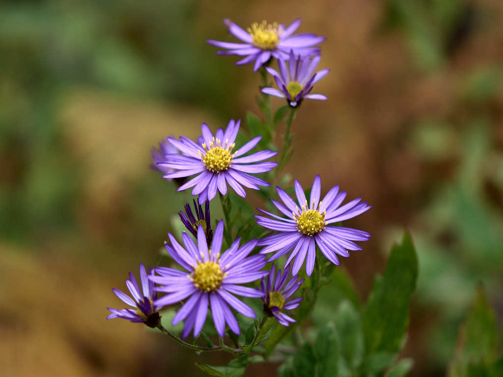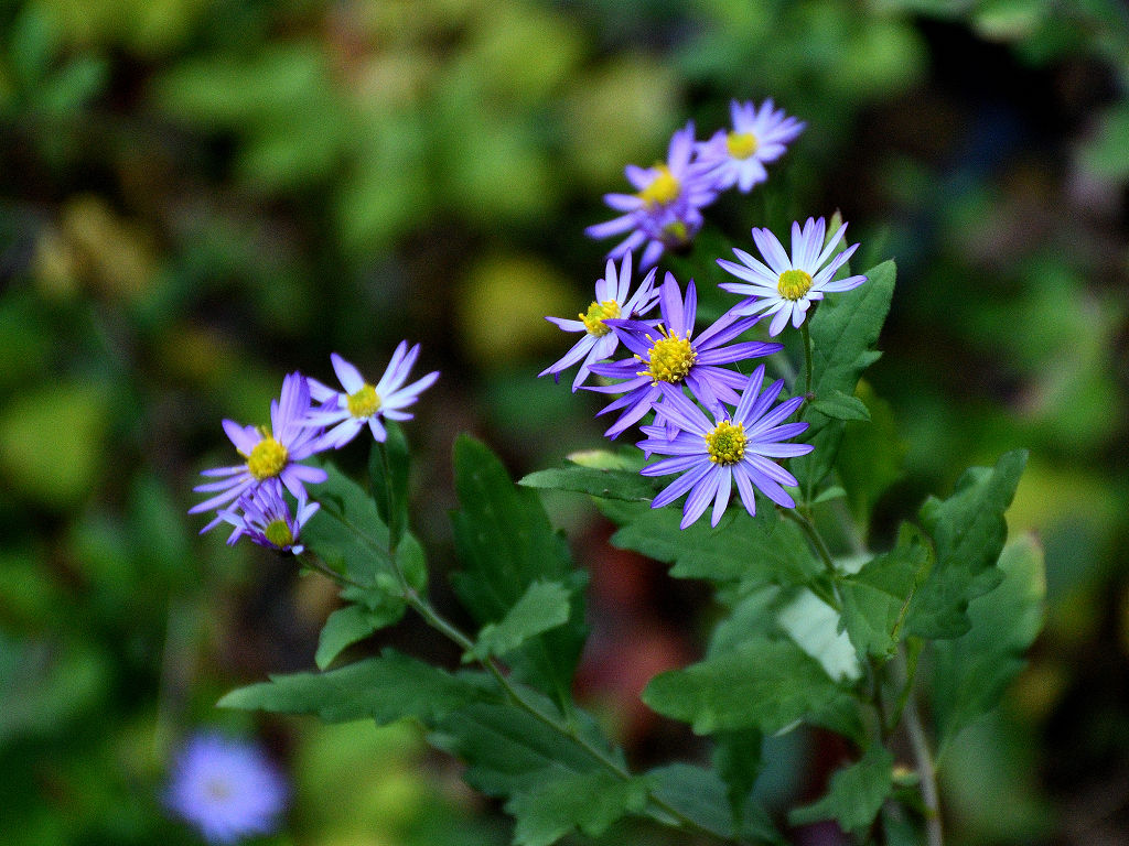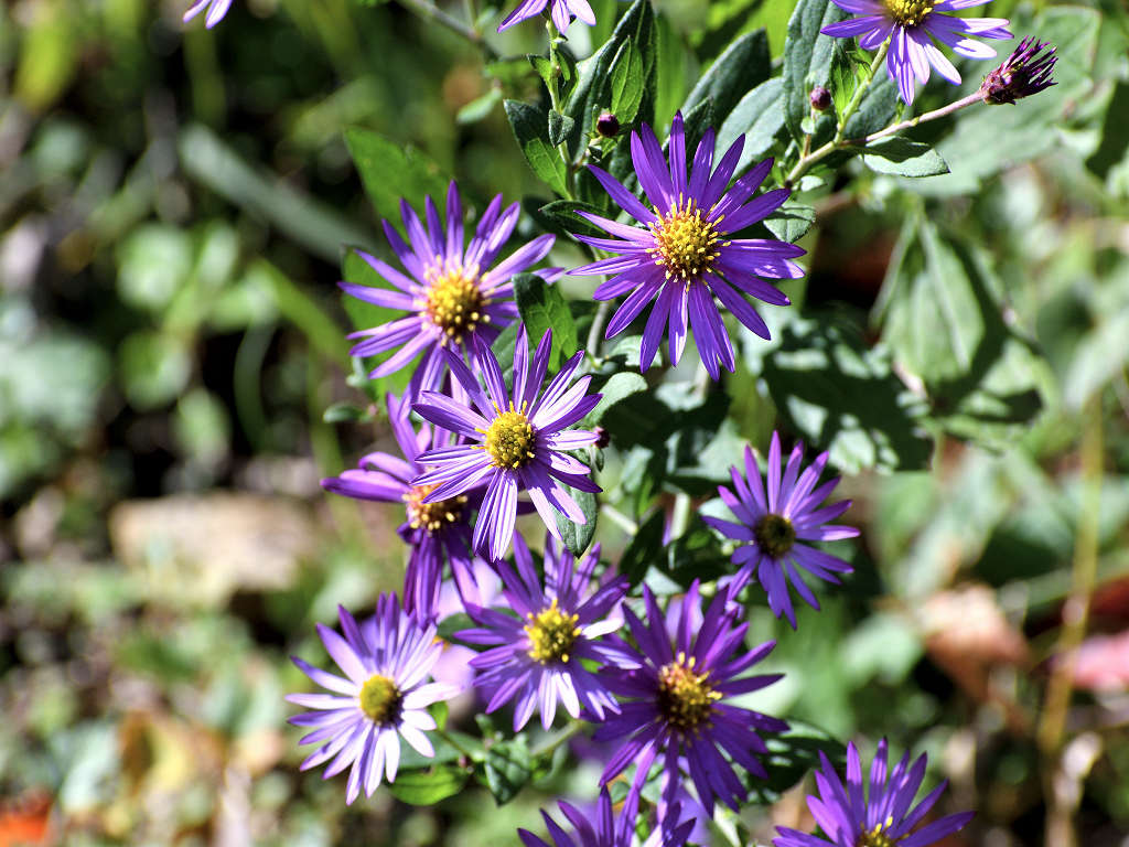 濃青紫色の花弁と黄色い筒状花からなる小花を沢山咲かせる ノコンギクより花色が青く、花付きが良い