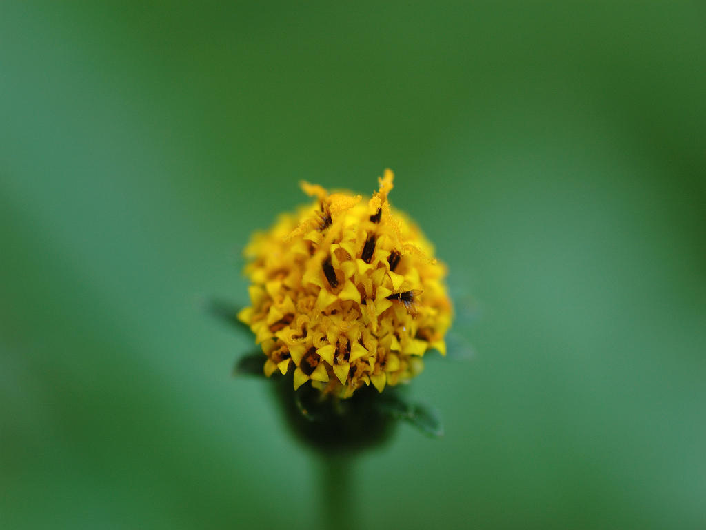 花弁状の舌状花はなく、筒状花が多数集まっている