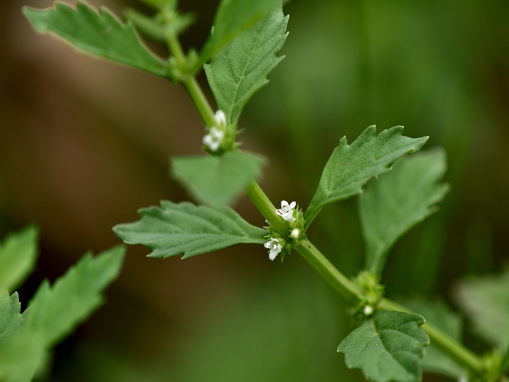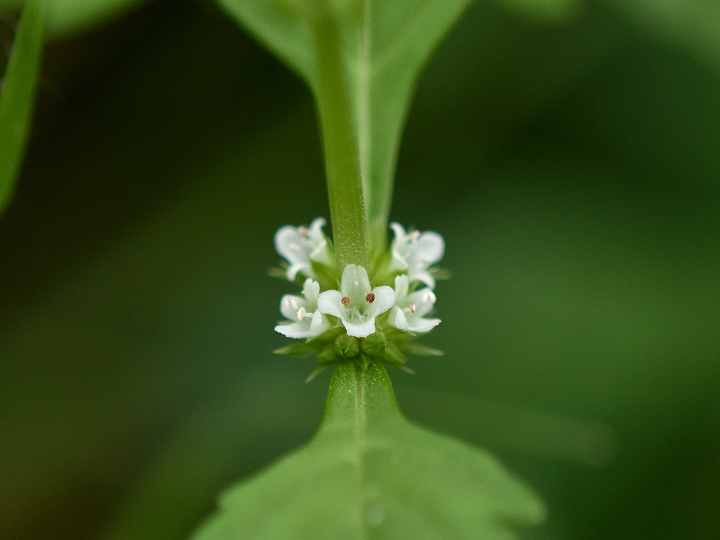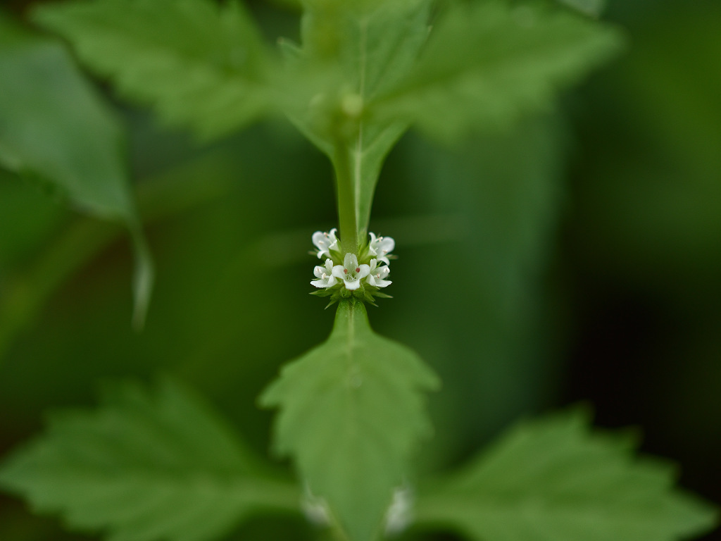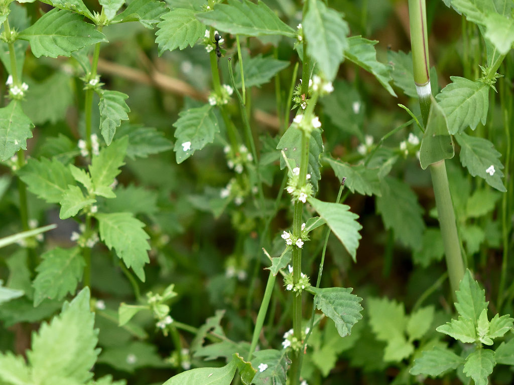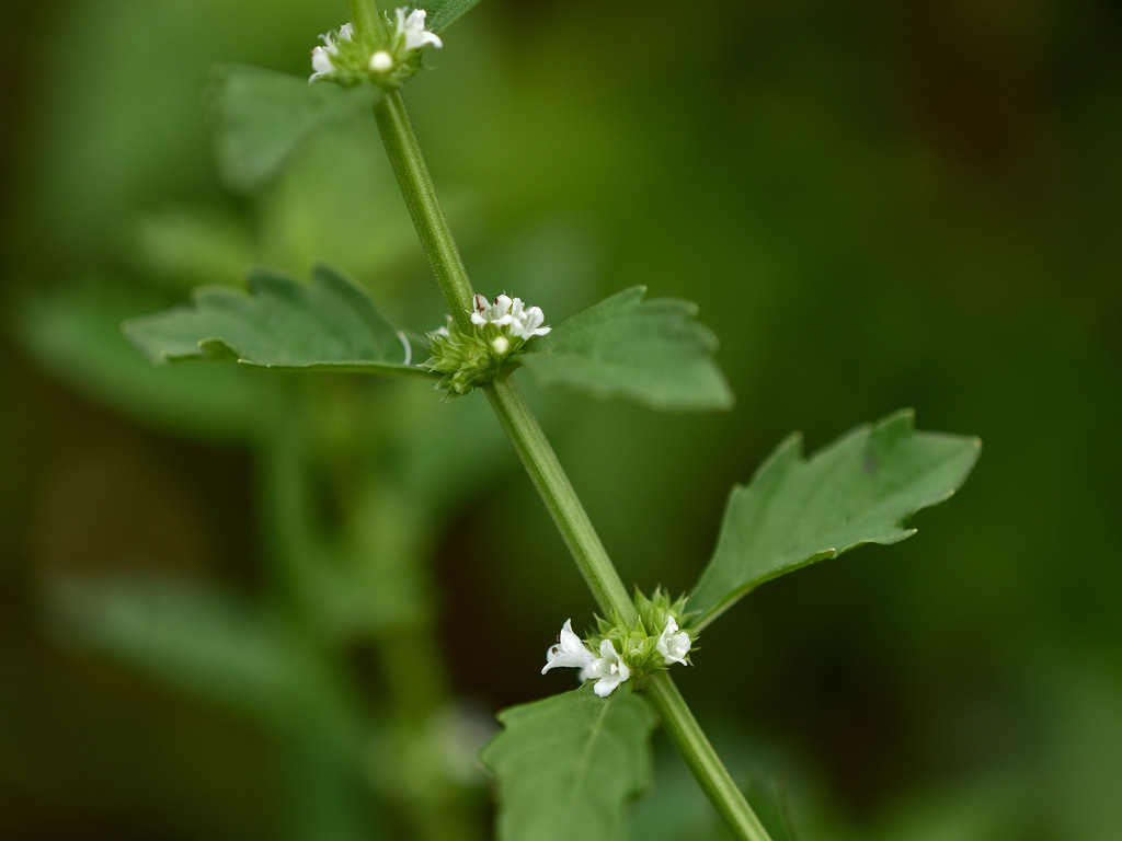 葉腋に白色の花を多数密につける ヒメシロネとは葉の形状が異なる