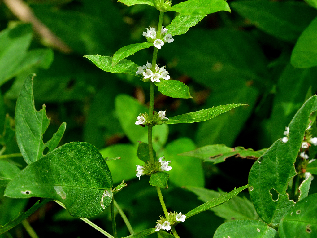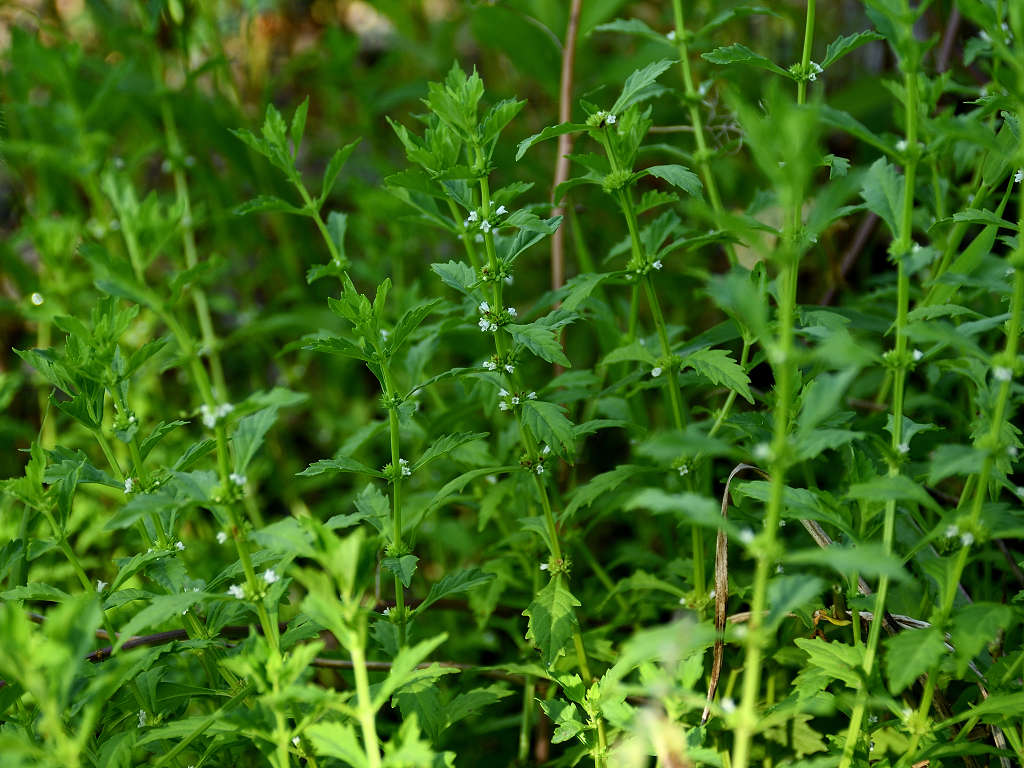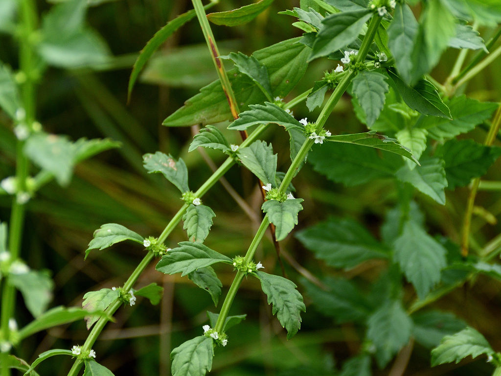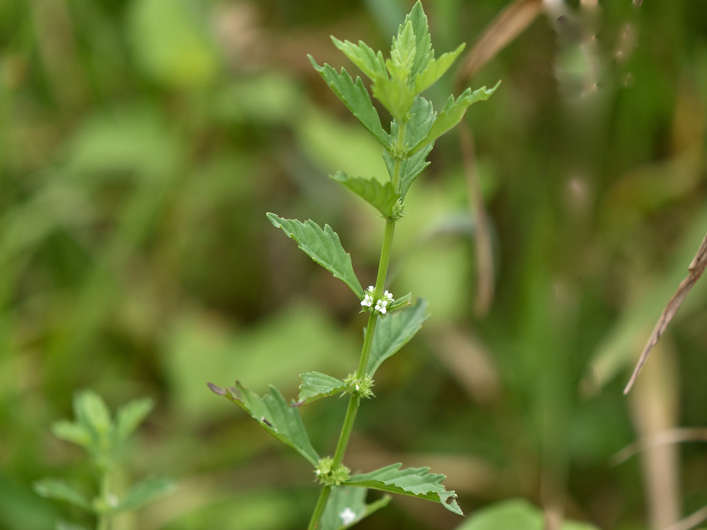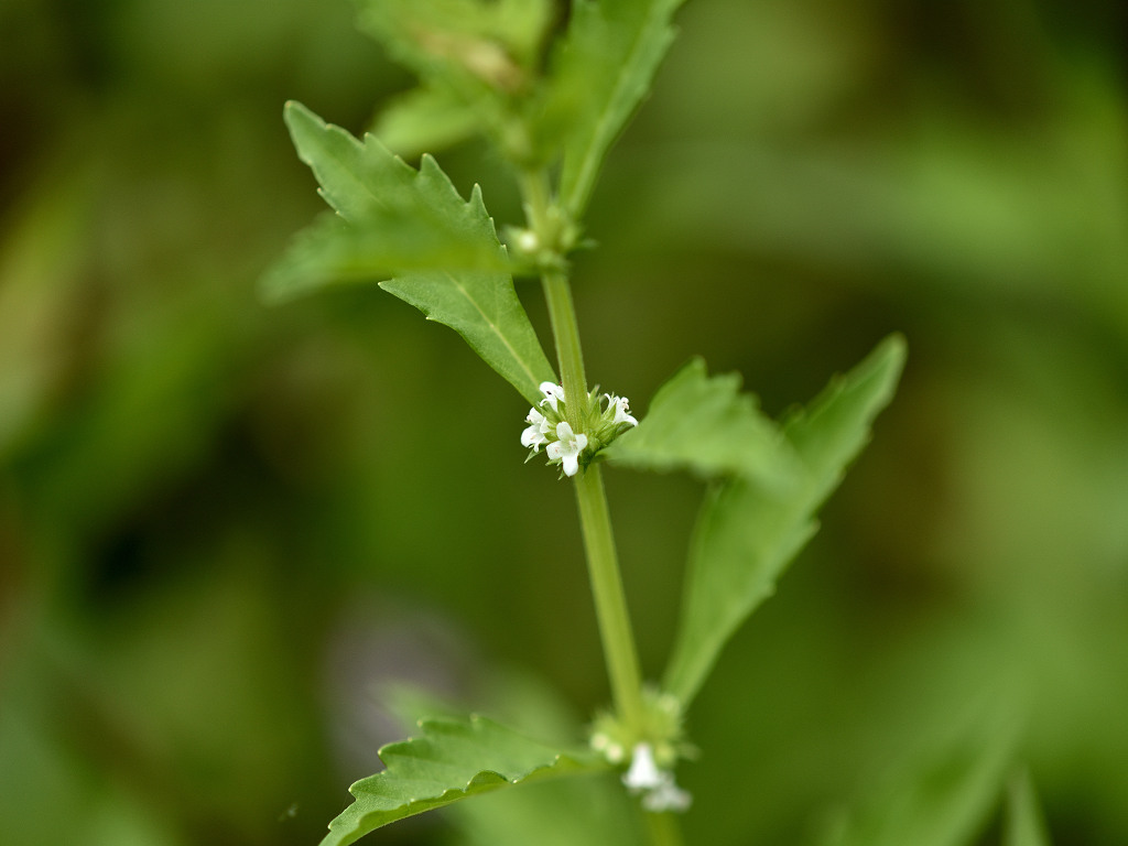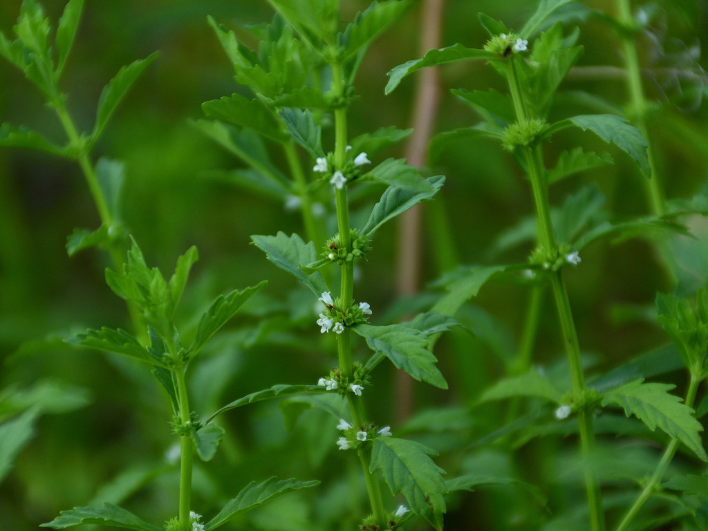 葉腋に白色の花を多数密につける ヒメシロネとは葉の形状が異なる