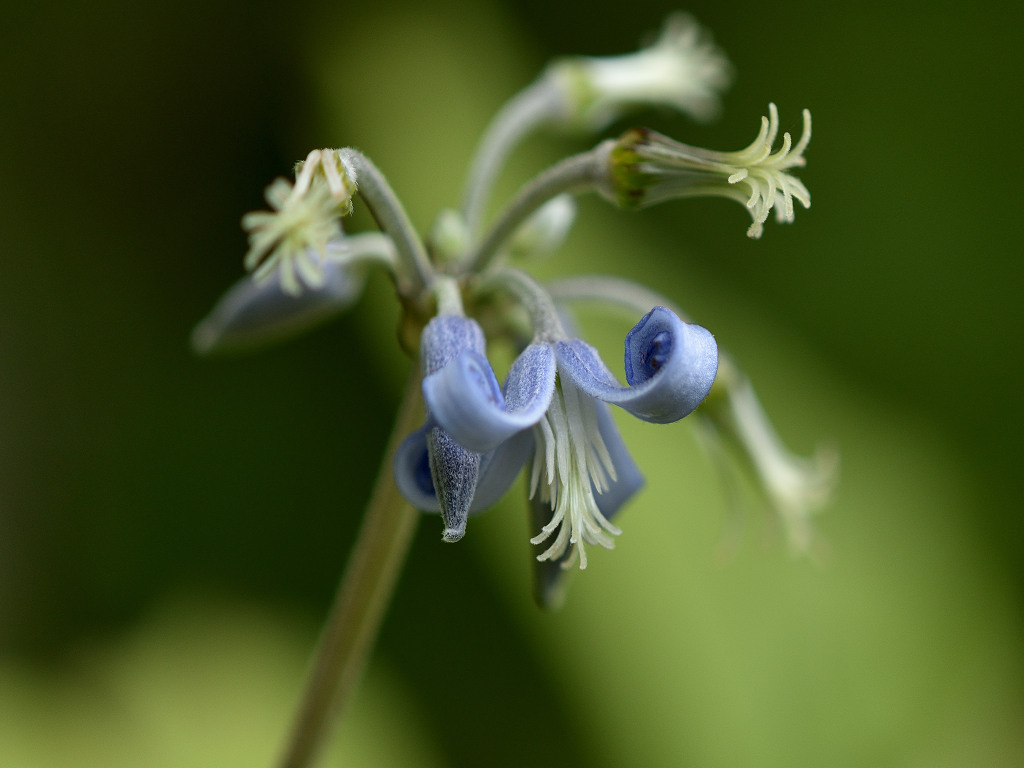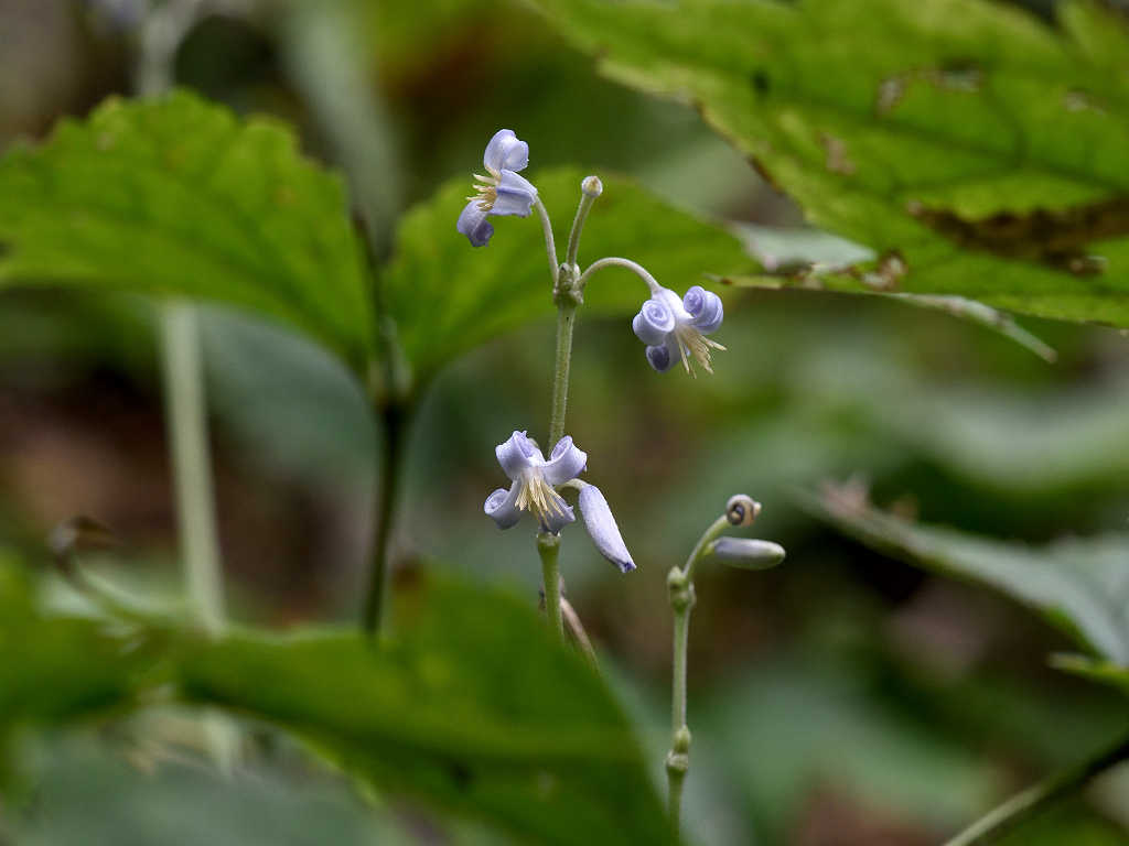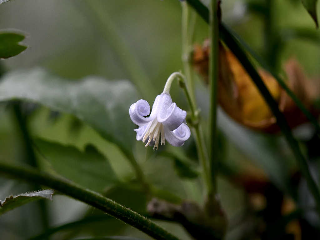 淡紫色の花弁状のガクが4枚ある 時がたつにつれて反転する
