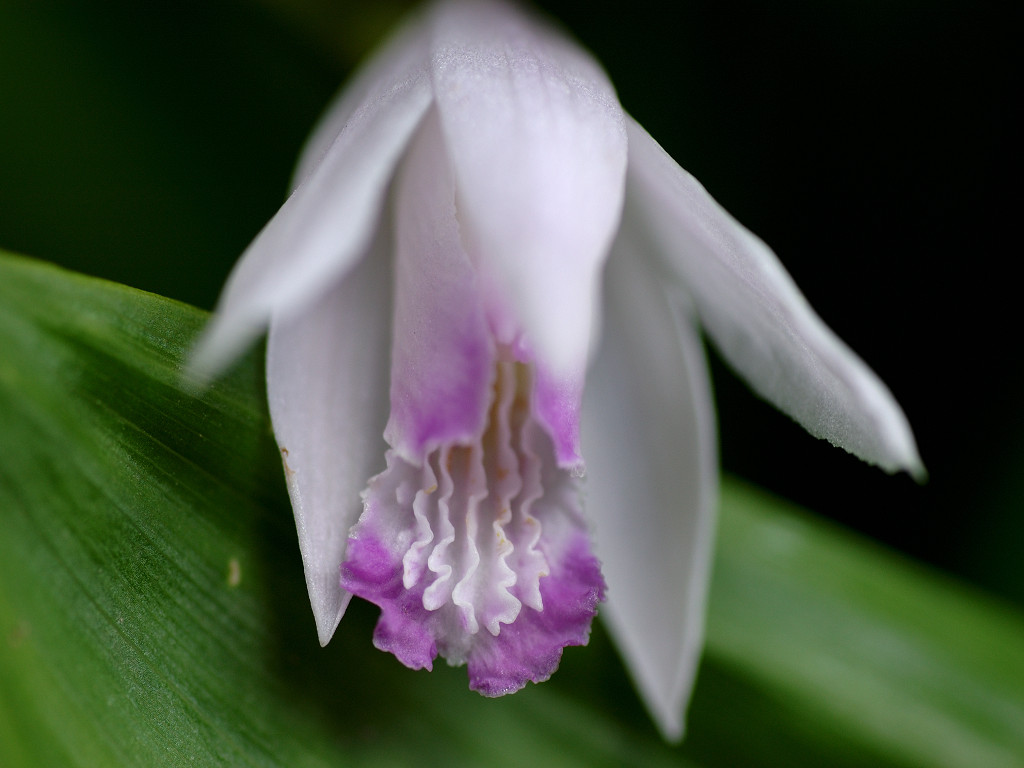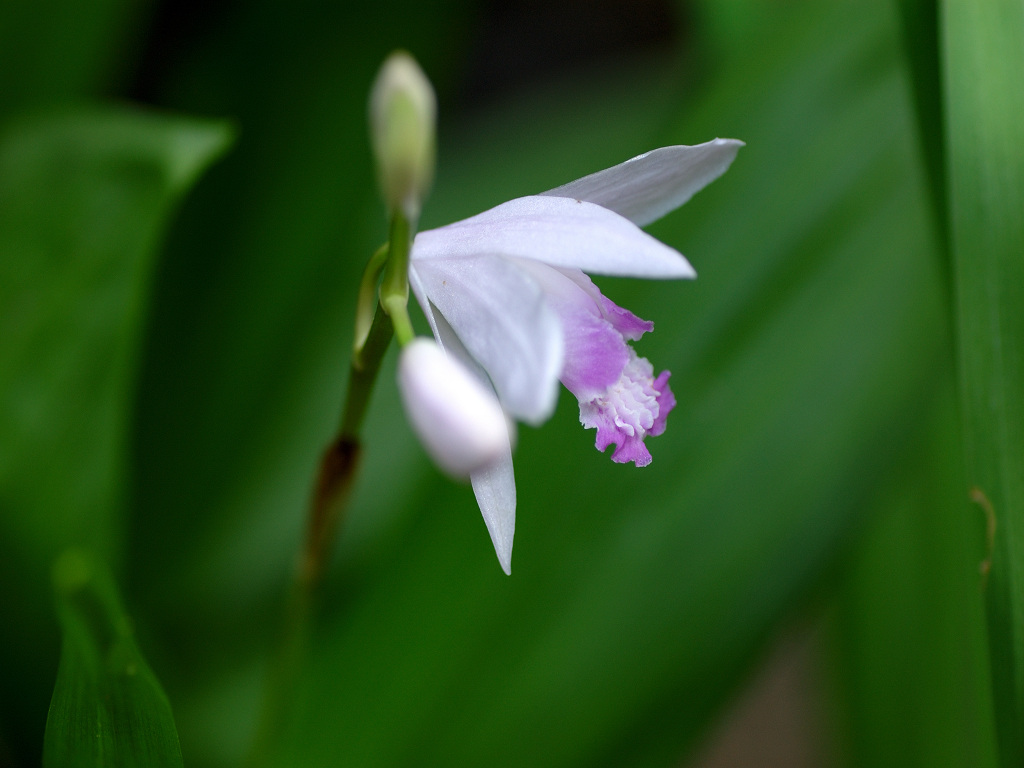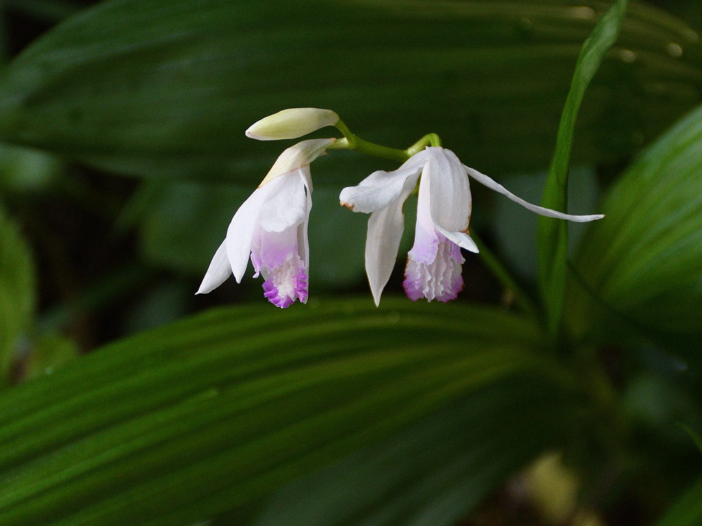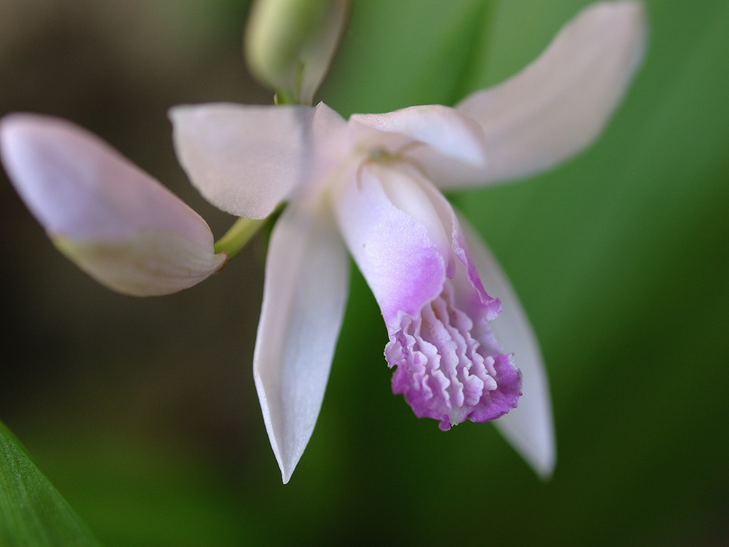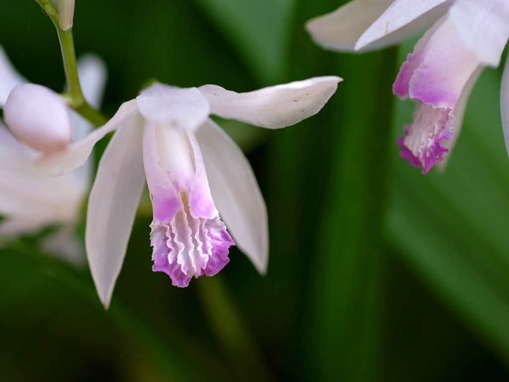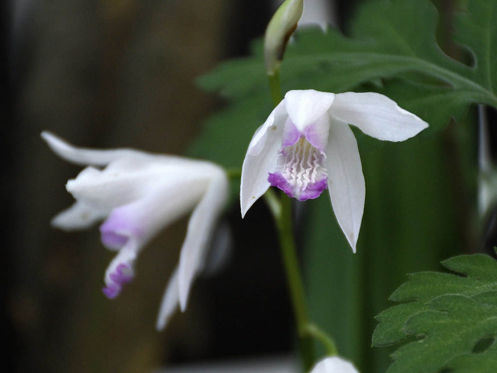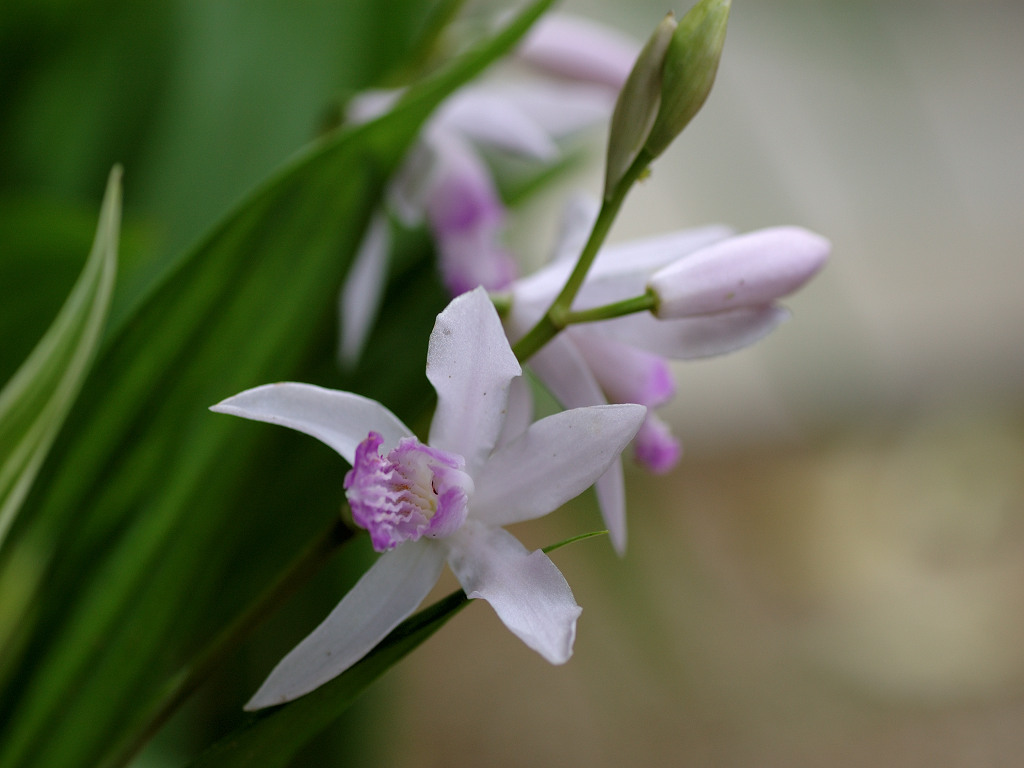 「シラン」の白花品種 花びらの先にちょっとピンク色がついているのを口紅に見立てて