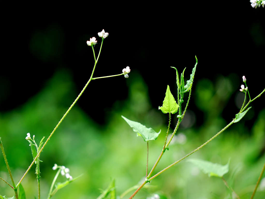 花弁はなく、ガクが花弁状のに深く5裂 葉は三角形 茎や葉裏に棘がある