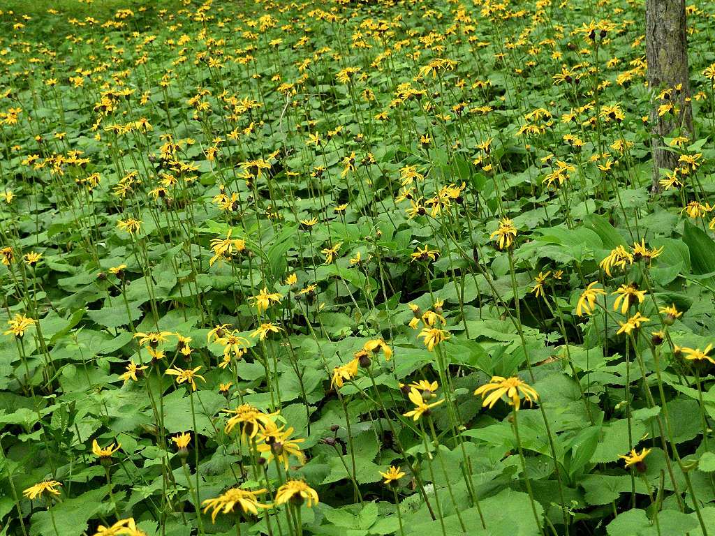 葉が丸く フキの葉に似ている フキの比べて標高の高い山岳に自生するので「岳蕗」と付いた