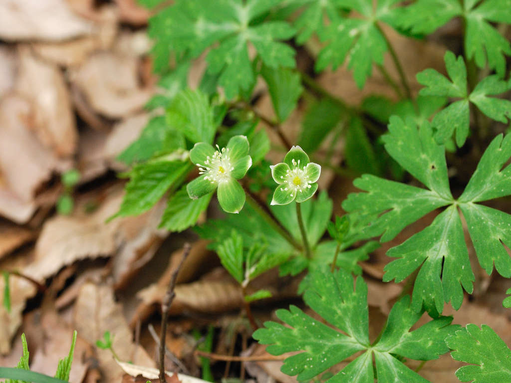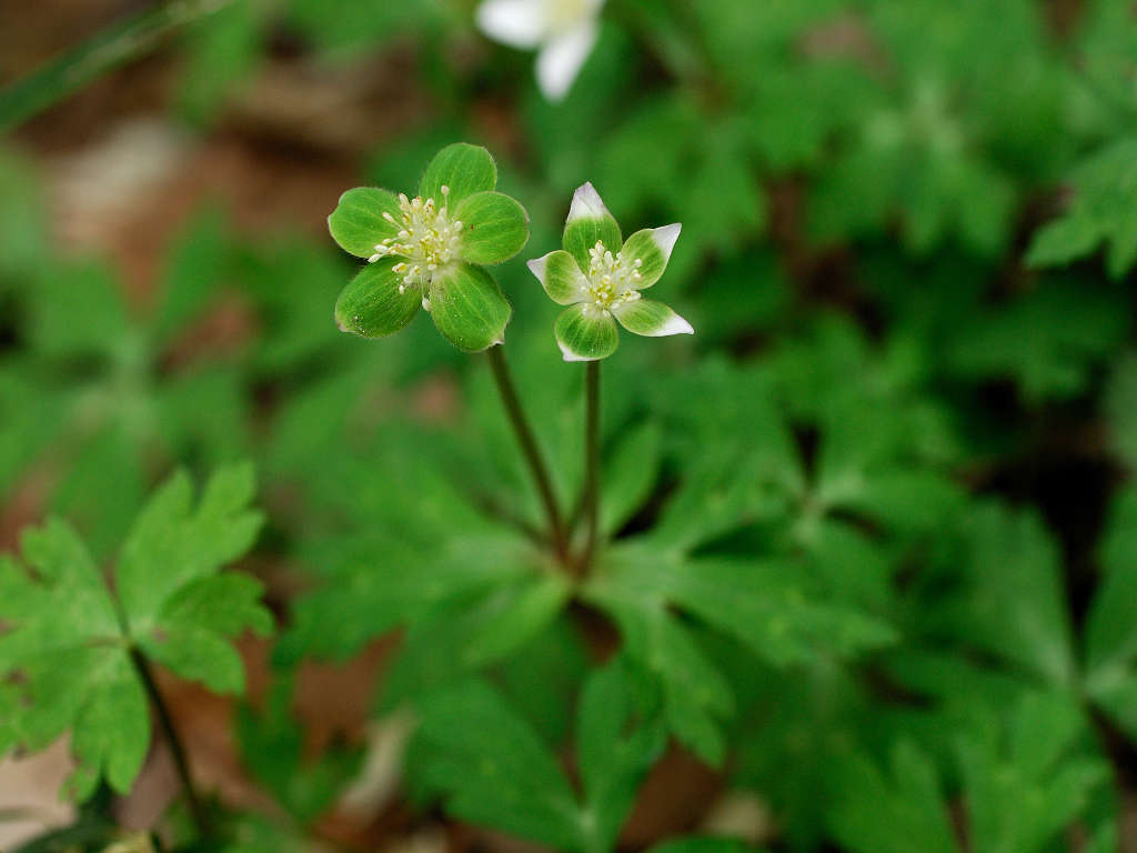 花弁状の萼が緑色になったものをミドリニリンソウと呼び区別する
