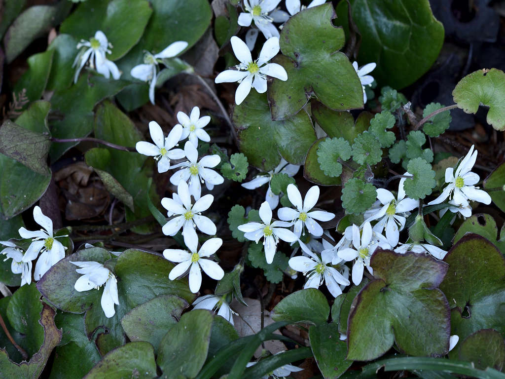 3っつに裂けた葉の角がいずれも尖っているので「ミスミソウ」 角が丸いのは「スハマソウ」