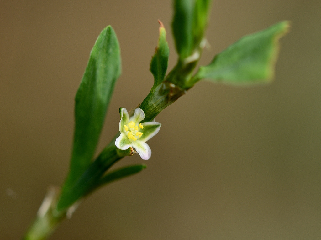茎は細い縦筋が目立ち、下部からよく分枝する 花は緑色で葉腋に1〜5個ずつ束生する