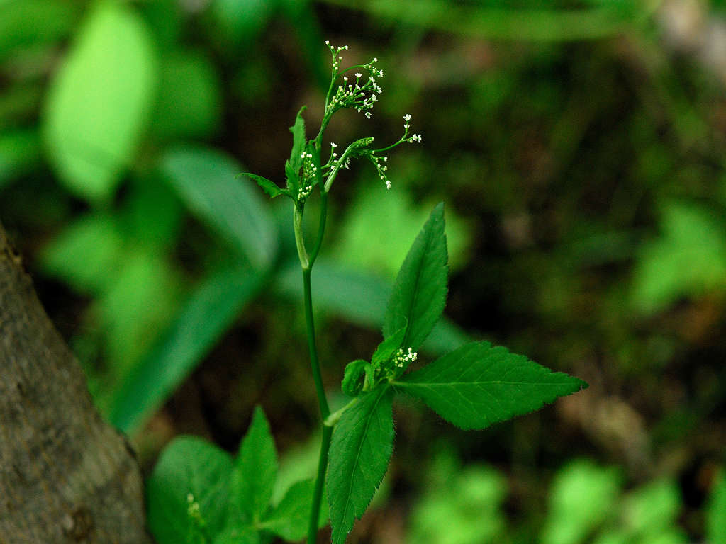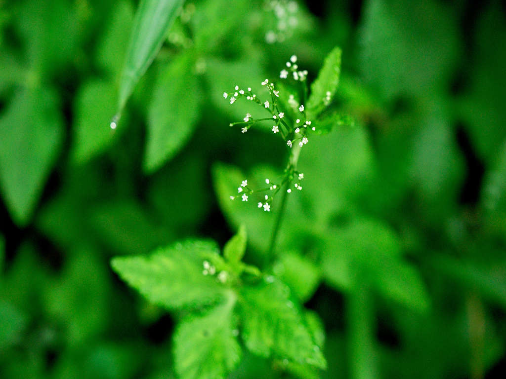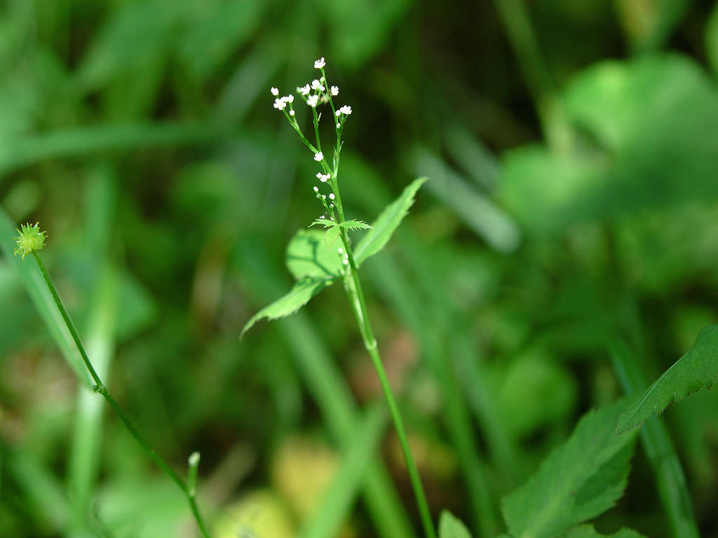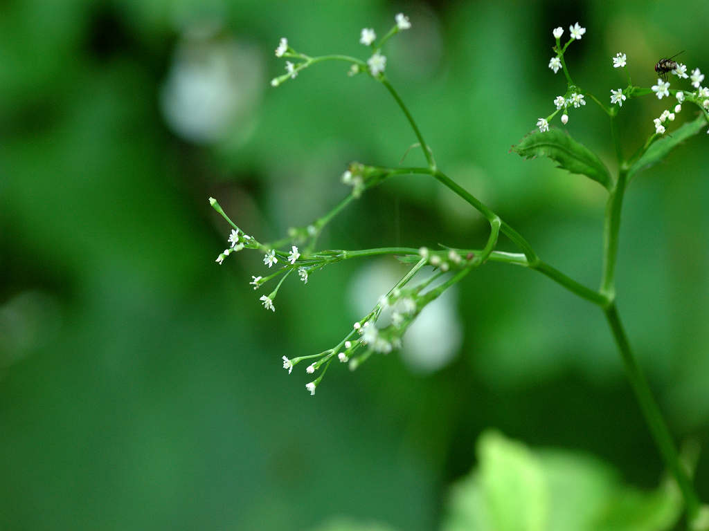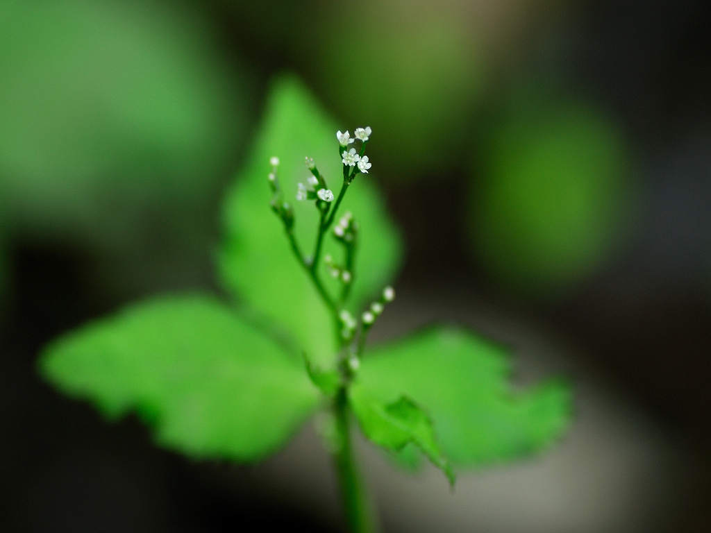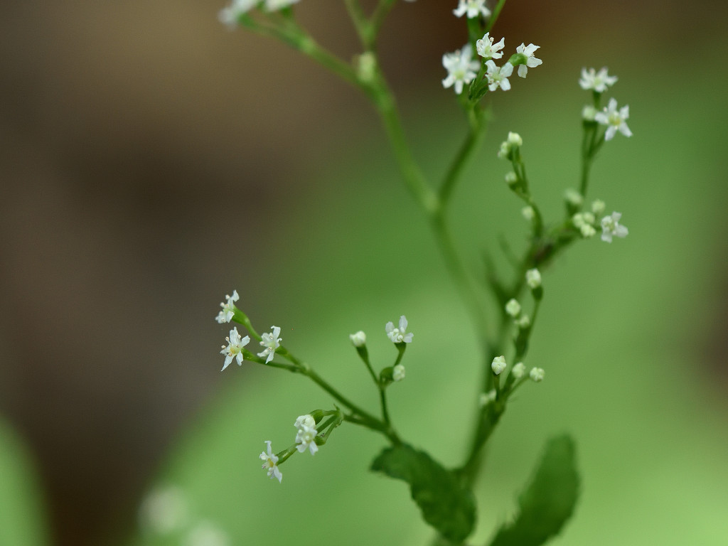茎は直立してよく分枝し、無毛。葉は互生し、3出複葉 花は白色