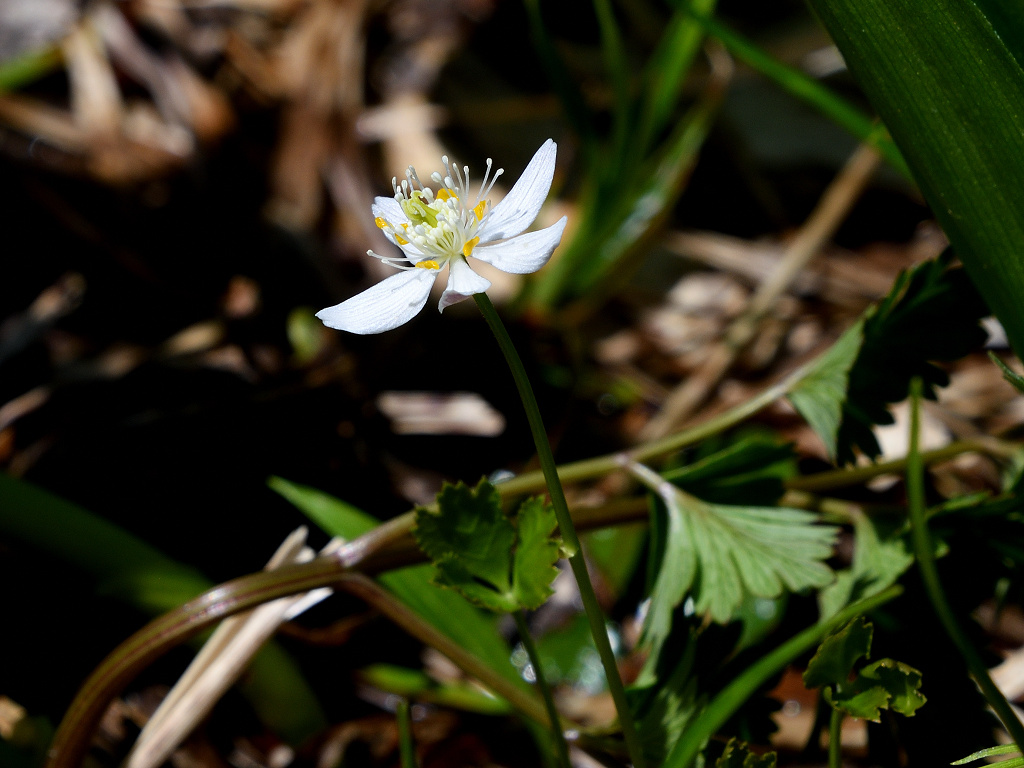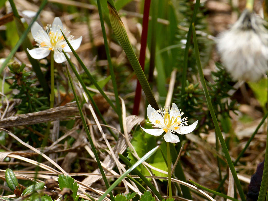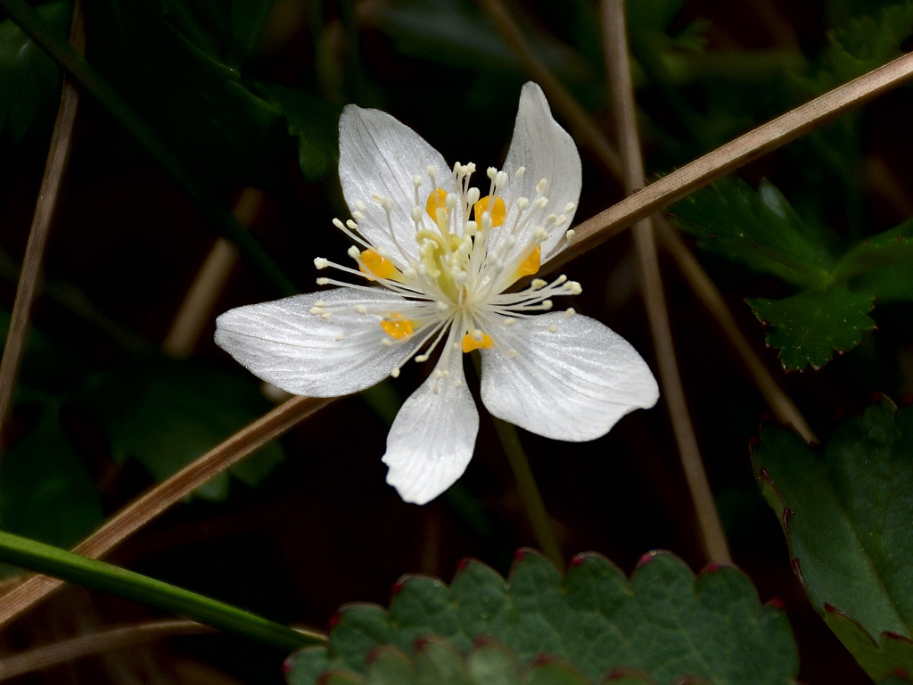 萼片は白くて長楕円形 コップ状の花弁(黄色く小さなのが本物の花びら)がこの属の特徴