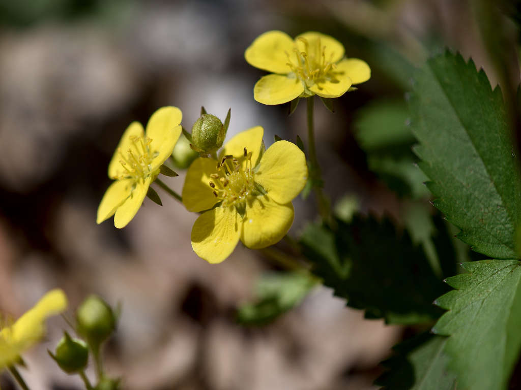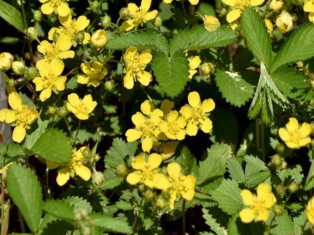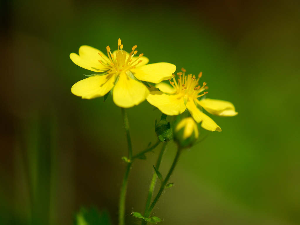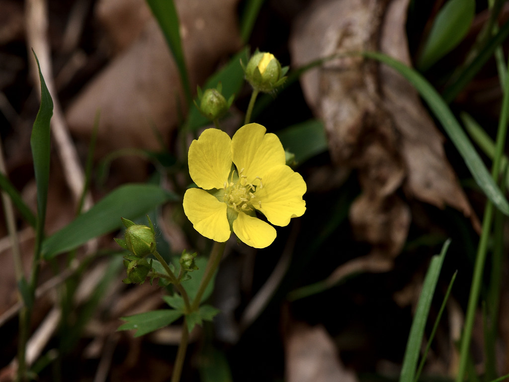 花径は5−10p 途中に小さな葉が付く 上部で枝別れし5弁の黄色い花を付ける