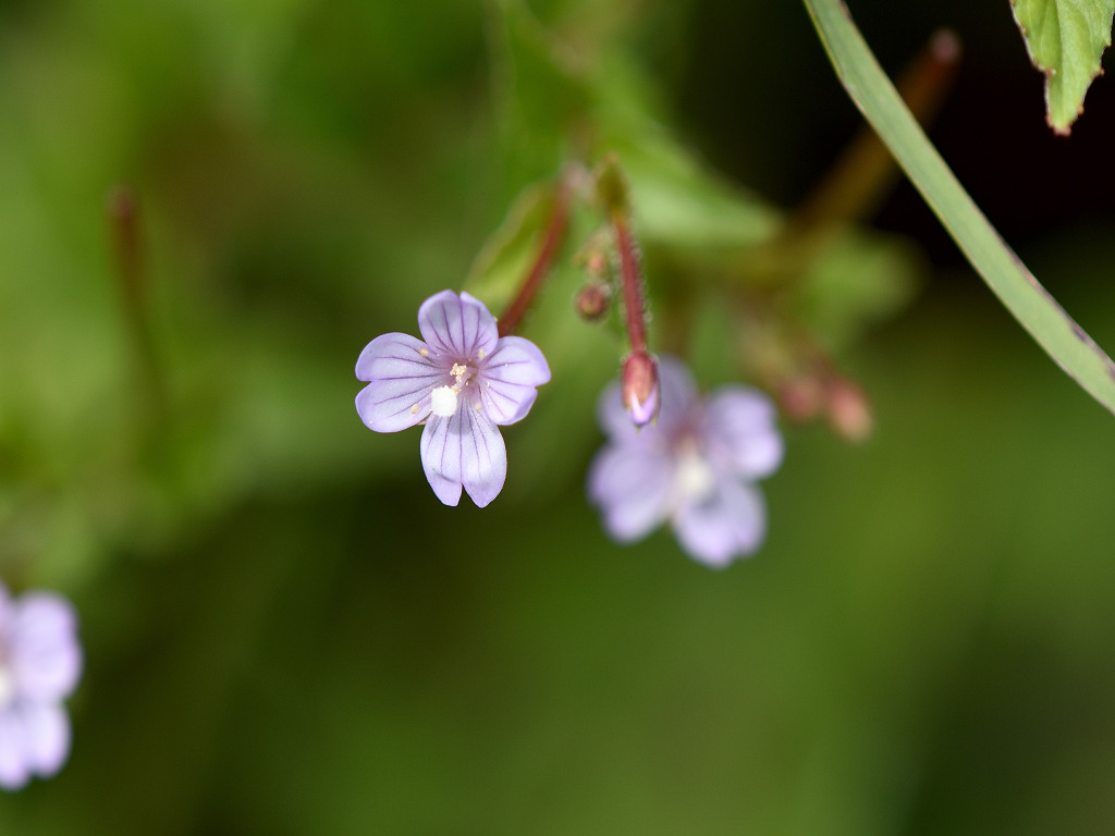 茎に稜があり、がくにも腺毛が生える 柱頭(雌しべ部)の形状がこん棒状