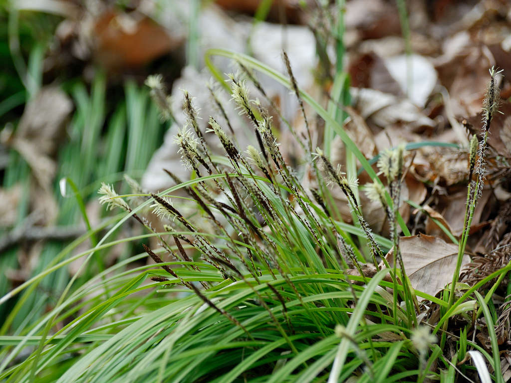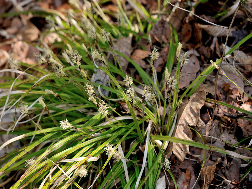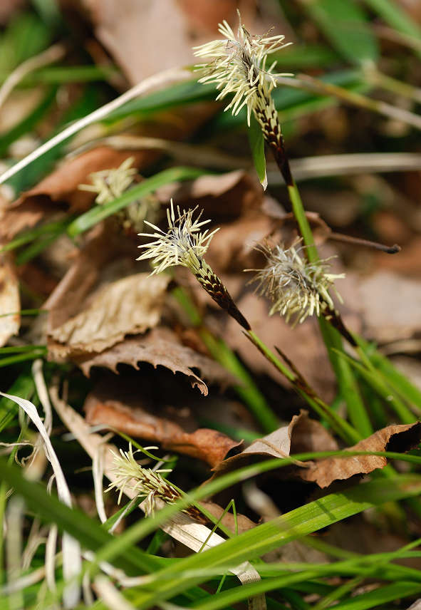 「カンスゲ」の高山種というのが名前 「カンスゲ(寒菅)」という名前のように越年草