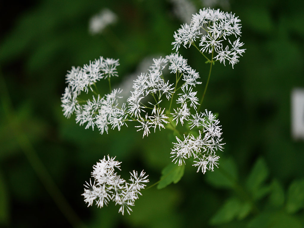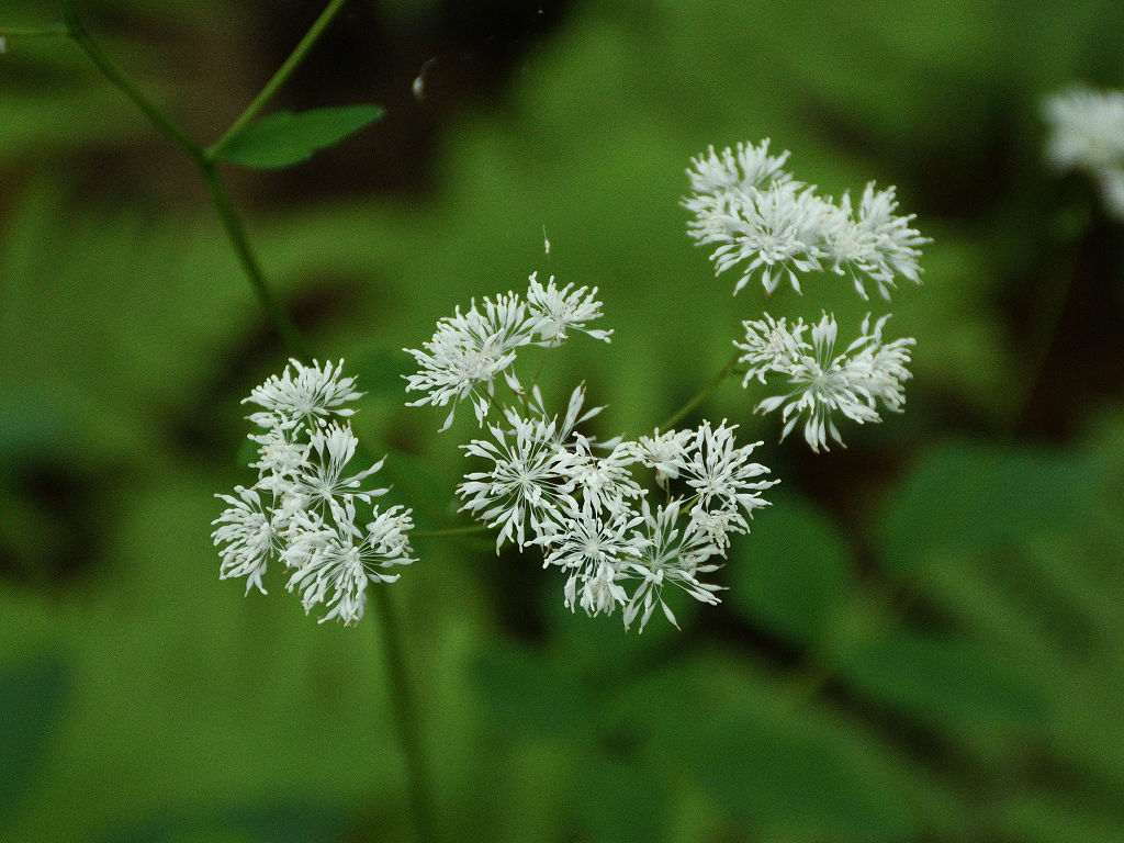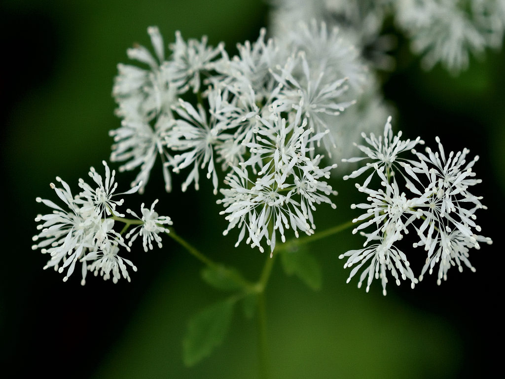 色は白色で花弁がなく、多数の雄しべが線香花火の様に放射線状に咲く