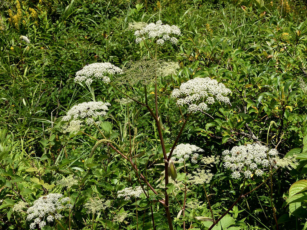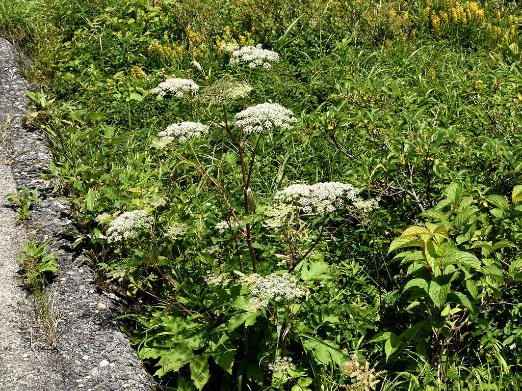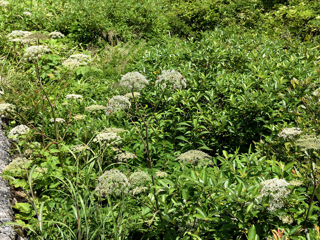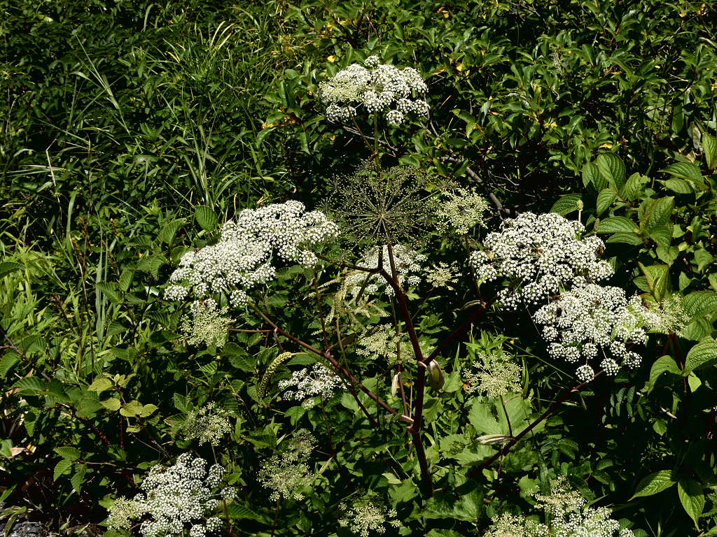 シシウドと同じ 総苞片、小総苞片はない 5弁の白い小さな花が咲く