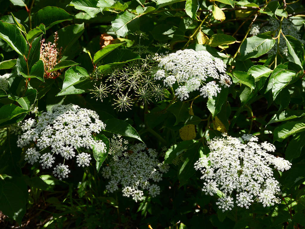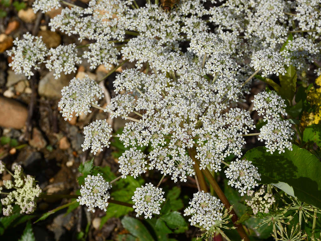 直径3ミリ程の小さな花が、小散形花序に多数付ける