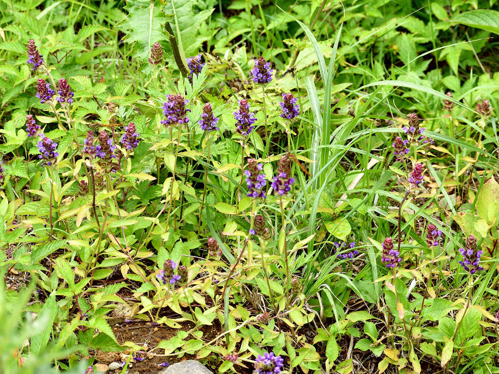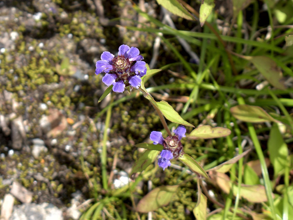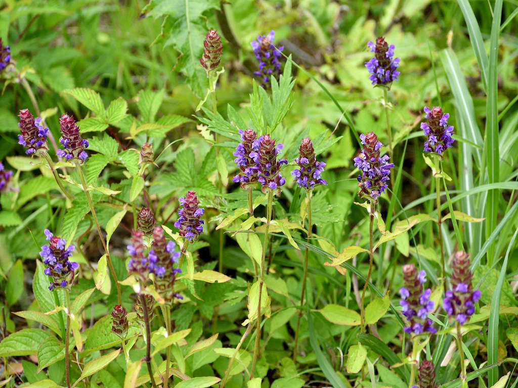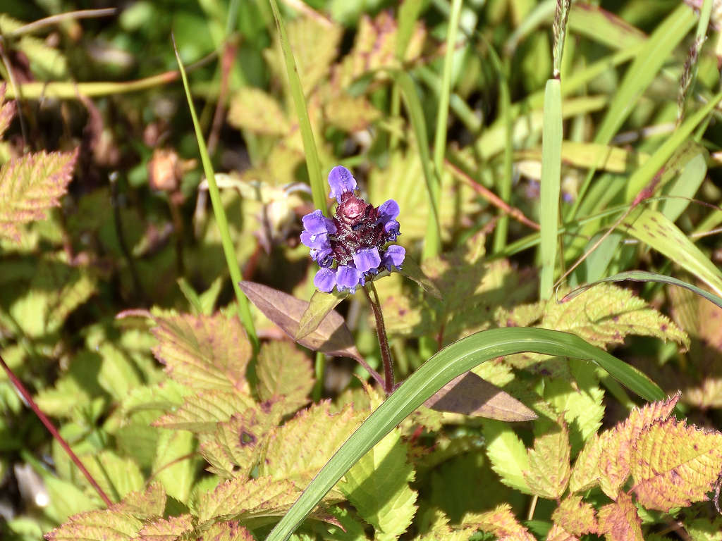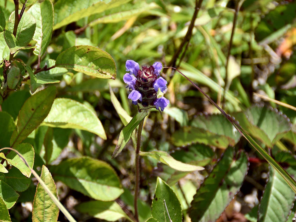ウツボグサより小型で、茎の基部から匍匐枝を出さない 葉に柄がある ウツボグサの頭はスゲ笠のように広がるが本種は上唇はかぶと状で広がらない