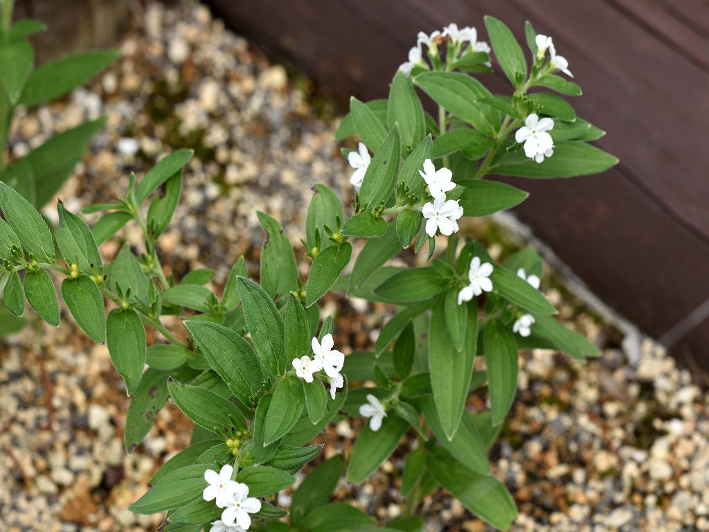 花が白いのにムラサキ(紫)というのは、昔から根が紫色の染料の材料として使われているから