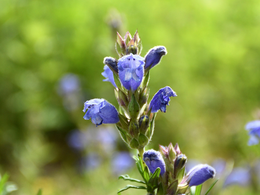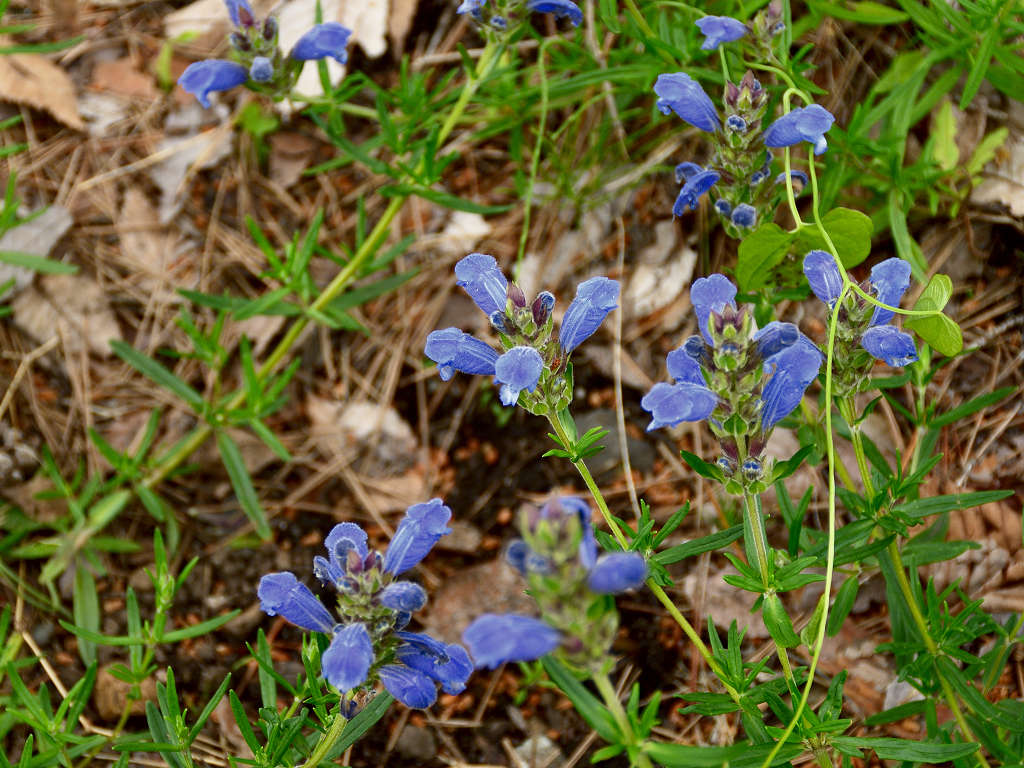 紫色の唇型でリンドウに似る 茎の上部に穂状に数個咲く