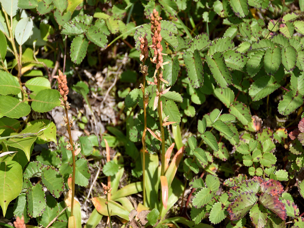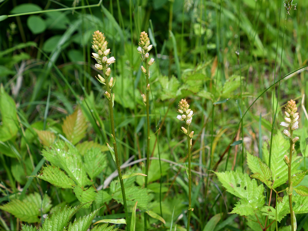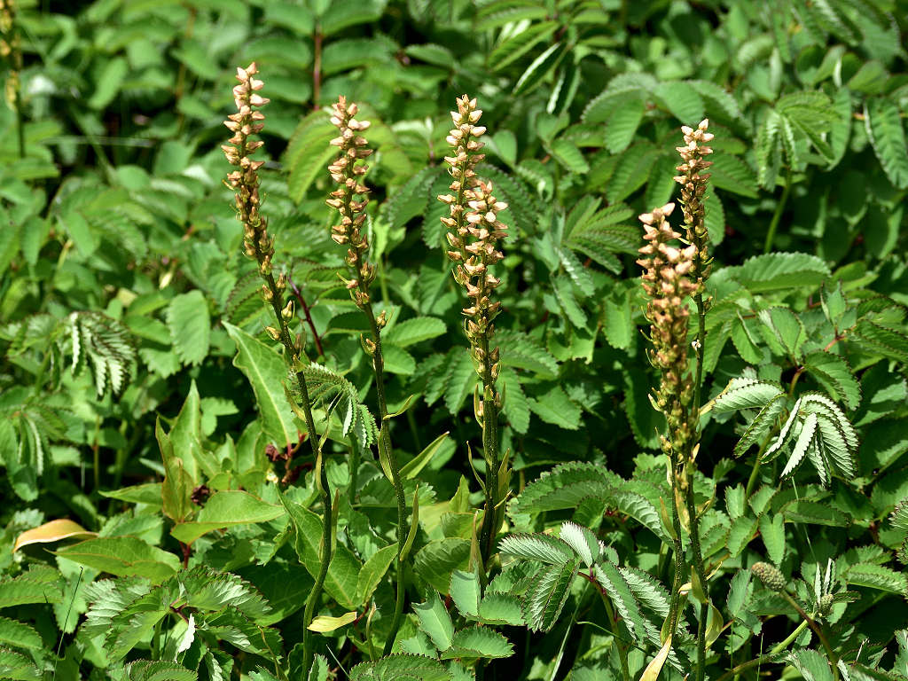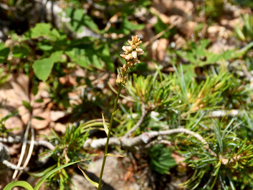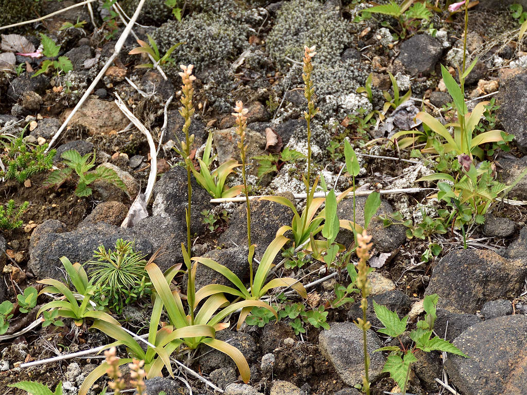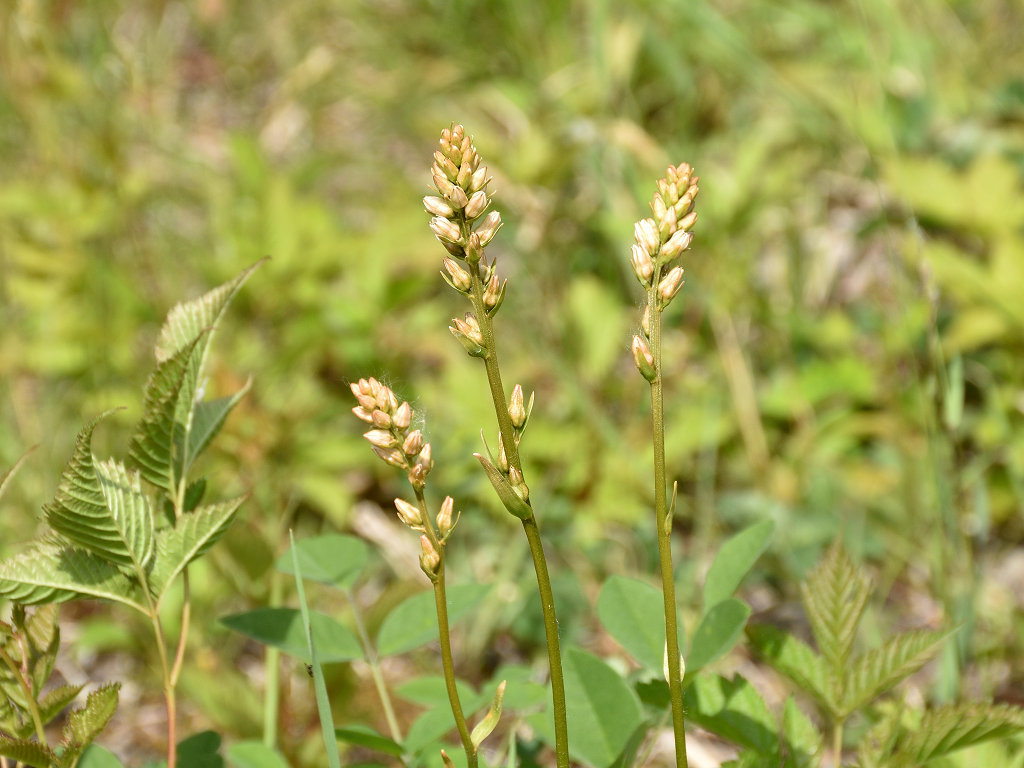 ノギランに似た花で花穂がベタつく 葉の側の小さな包をイネ科の「芒」と見立てて付いた名
