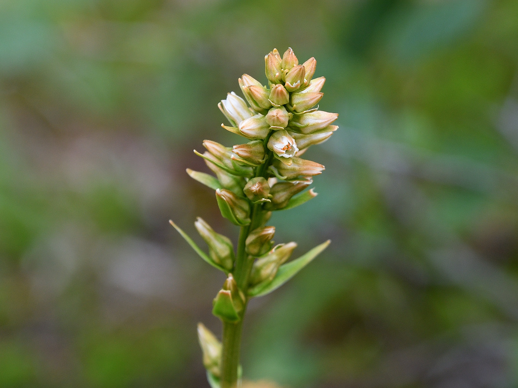茎の上部に壺型の小さな花を沢山つける 花穂ハベタベタする 花弁は6枚ただ基部で合着しているので、開いているか解らない花