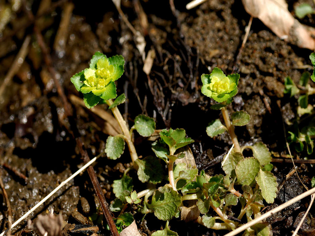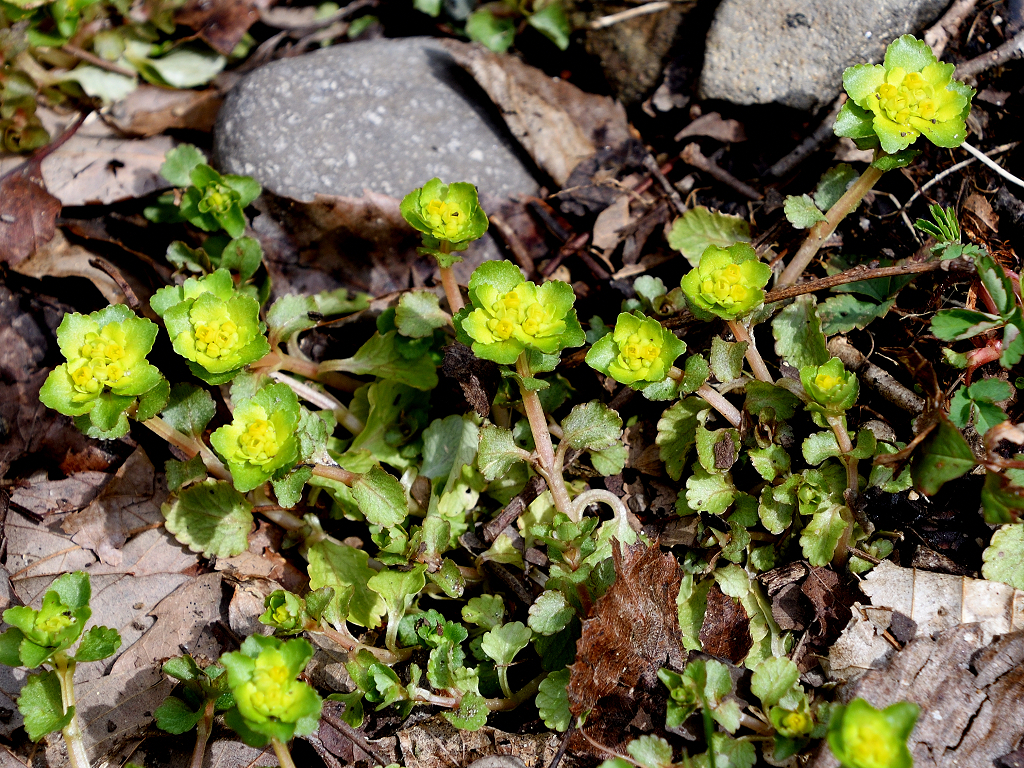 「ヤマネコノメソウ」との違いは 葉が対生 茎に毛がない 花弁状のガクが黄色で目立つ