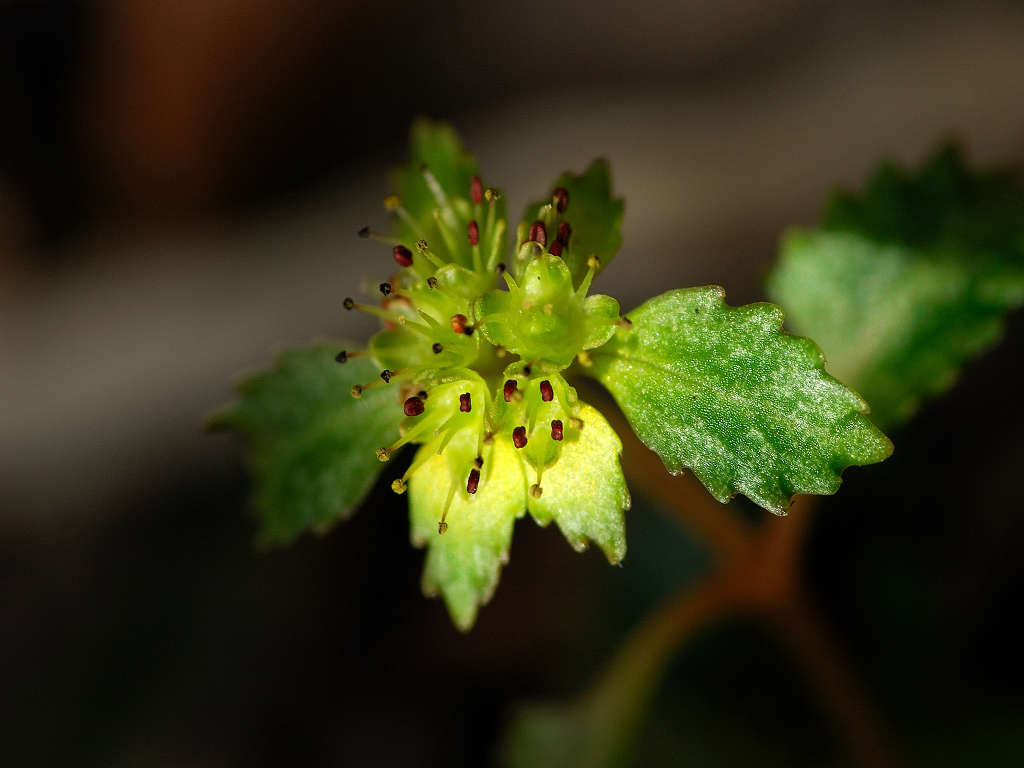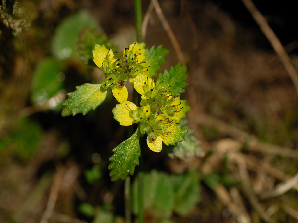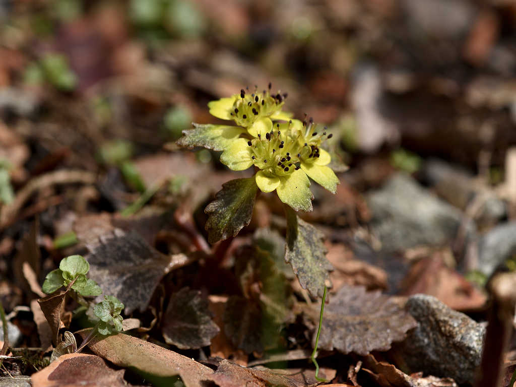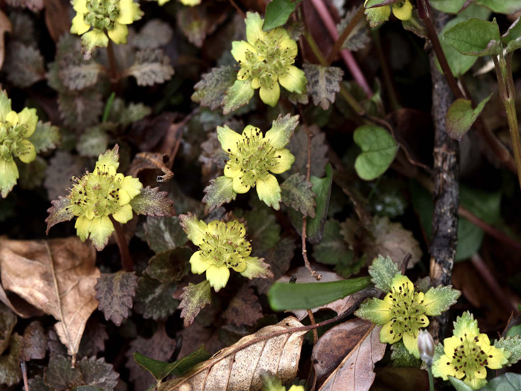 | 花の特徴 | ガクは丸みを帯び平開 色は黄緑色から黄色でオシベは6〜8本ガクから大きく飛び出す。葉は対生、葯は赤褐色、ヨゴレネコノメに似ているが ガグが開平(ヨゴレは直立) ガク片の色が黄色、黄緑色(ヨゴレは灰色、褐色) ガク片の先が尖る(ヨゴレは先が鈍形) 雄しべの本数 8本ガクより長い(ヨゴレは4−8本 ) |