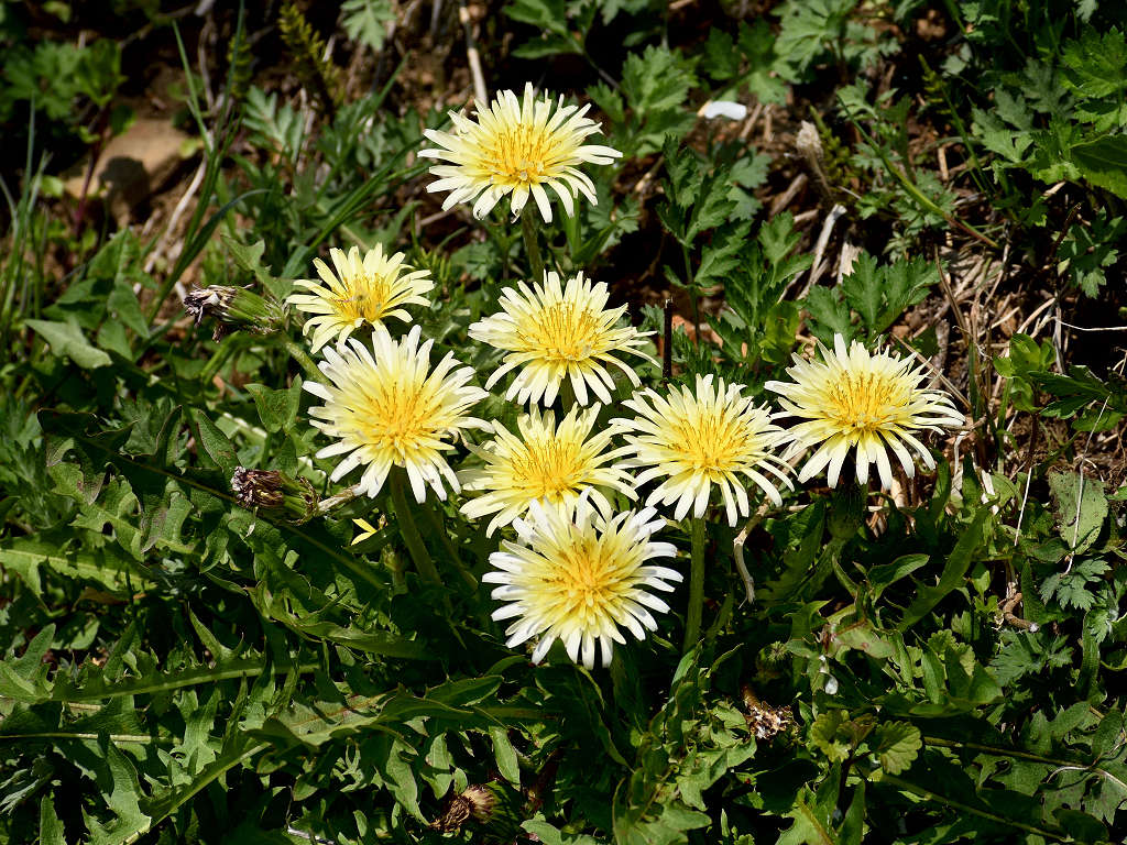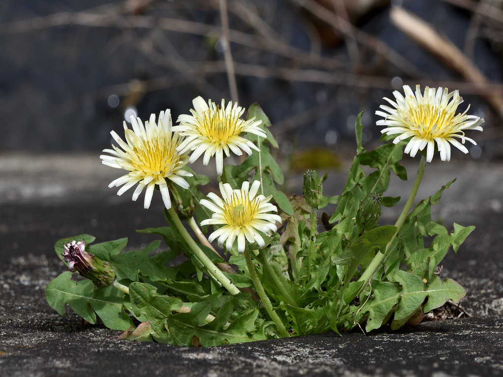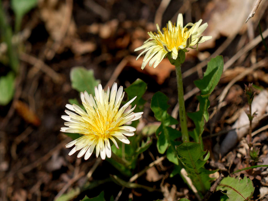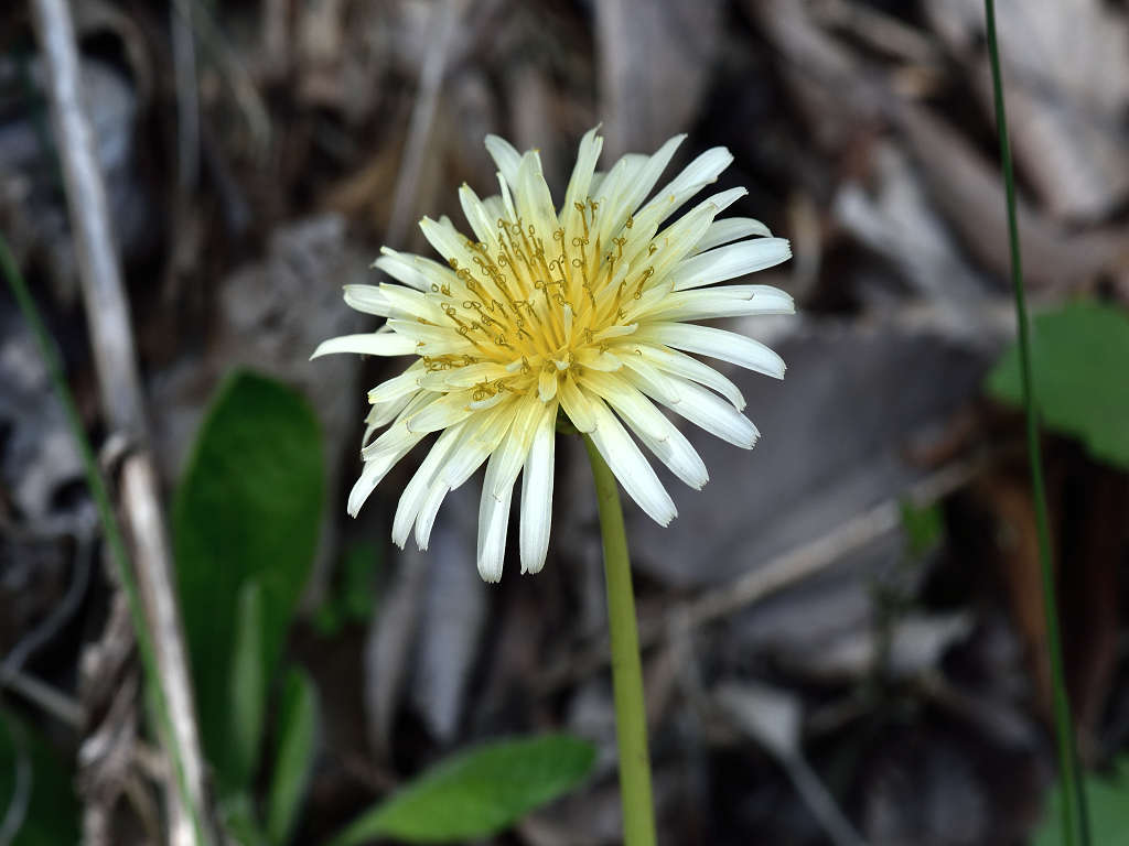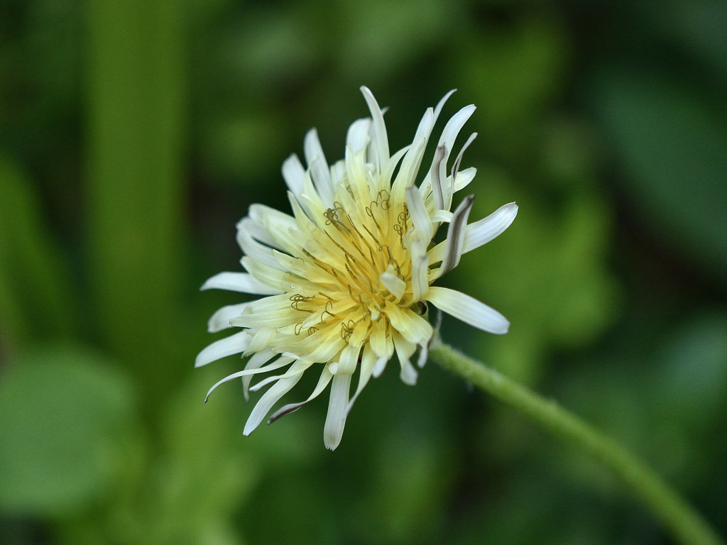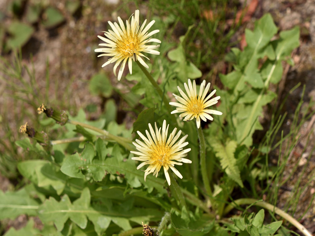 花頭が白っぽいのが特徴 シロバナタンポポに似ているが総苞外片には突起がない