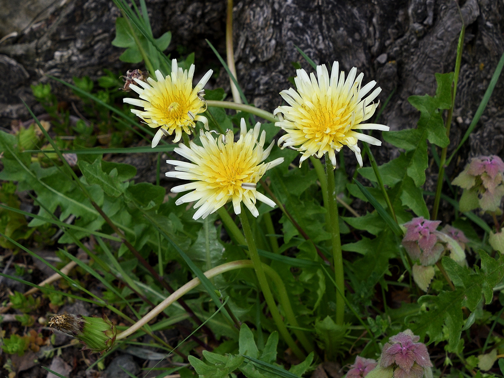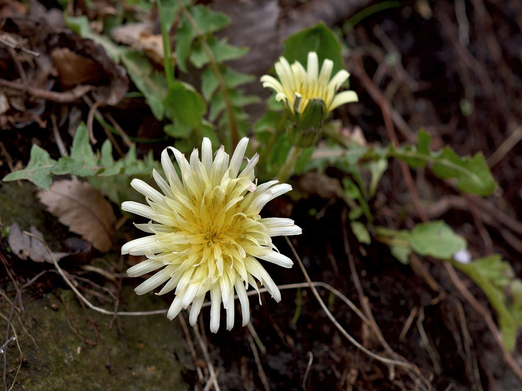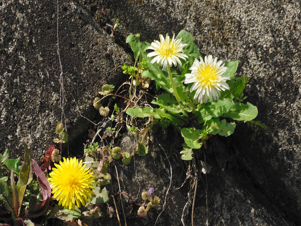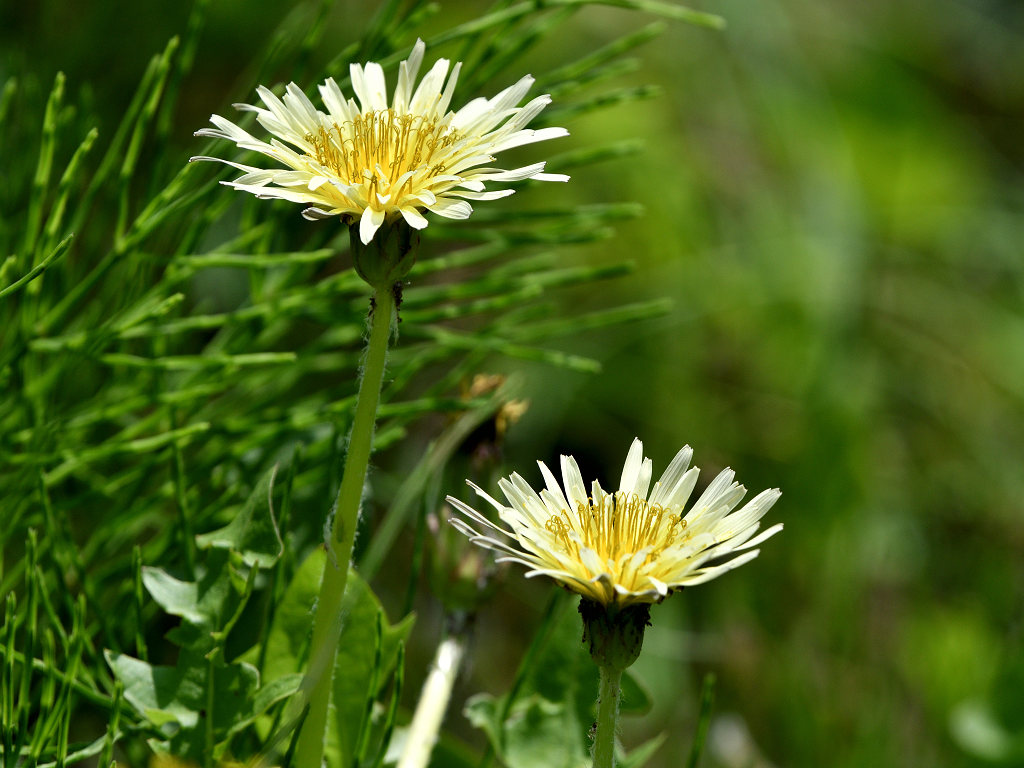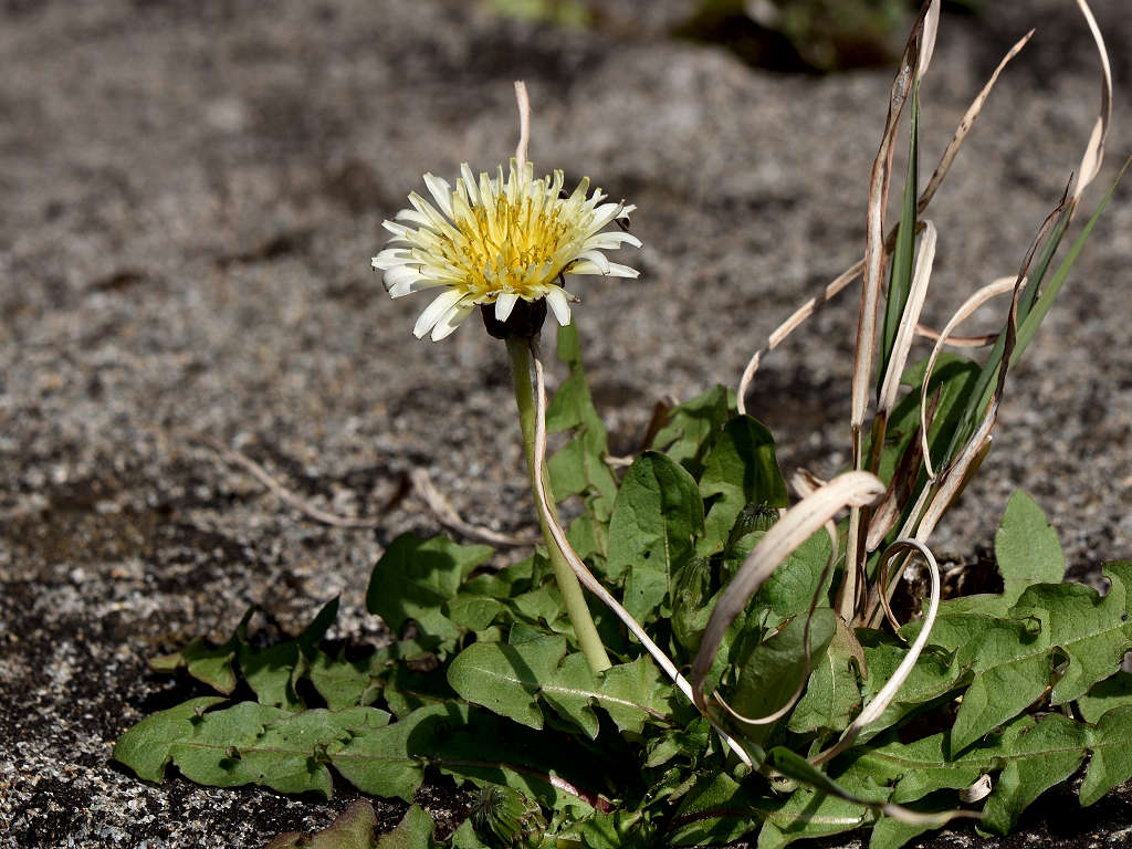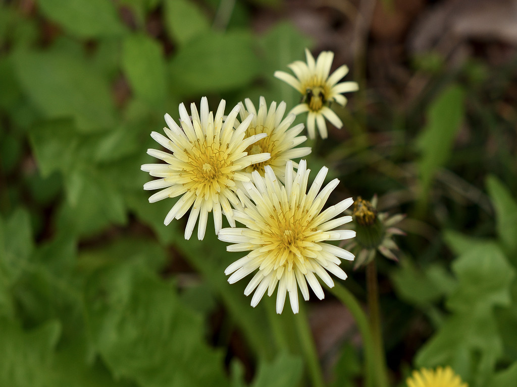 花頭が白っぽいのが特徴 シロバナタンポポに似ているが総苞外片には突起がない