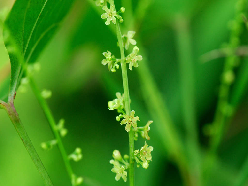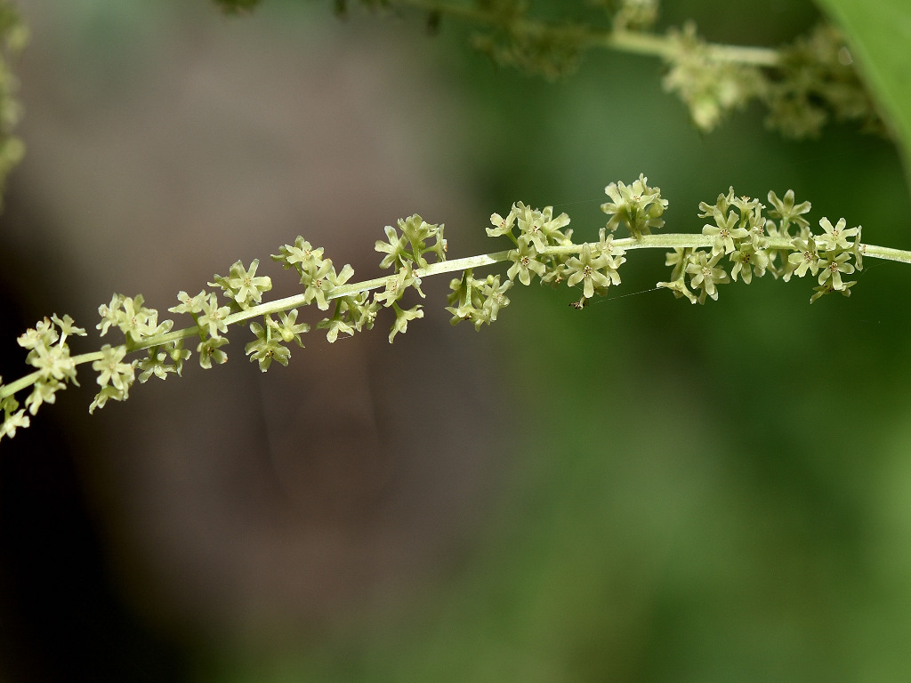 雌雄別株 雄株の花序は上向きに伸び、雌花の花序は下向きに伸びる