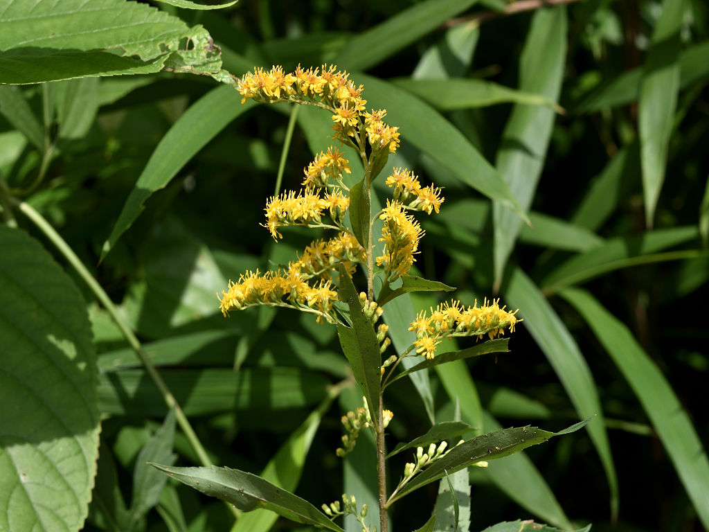 「セイタカアワダチソウ」は花の上部は尖るが、本種は尖らないのが特徴 花の咲く時期も本種は夏