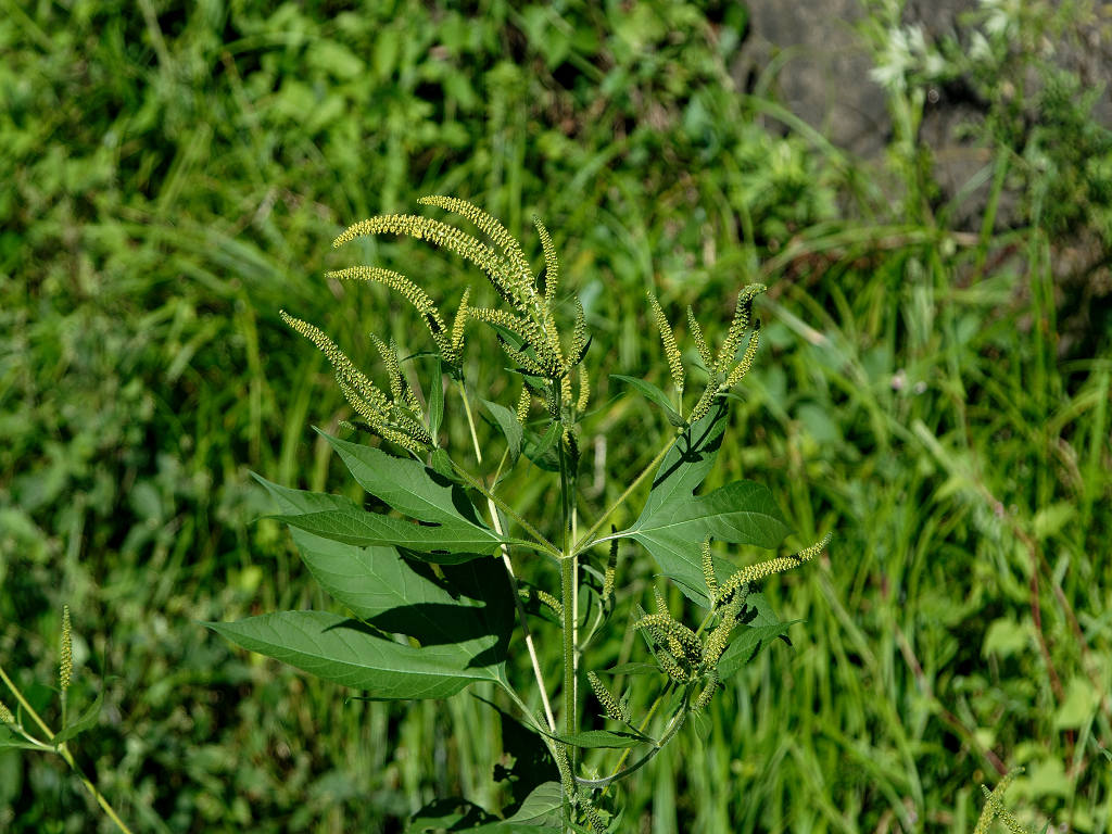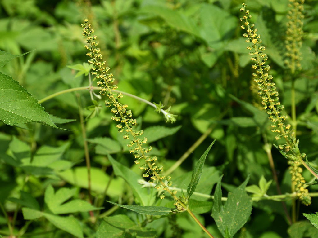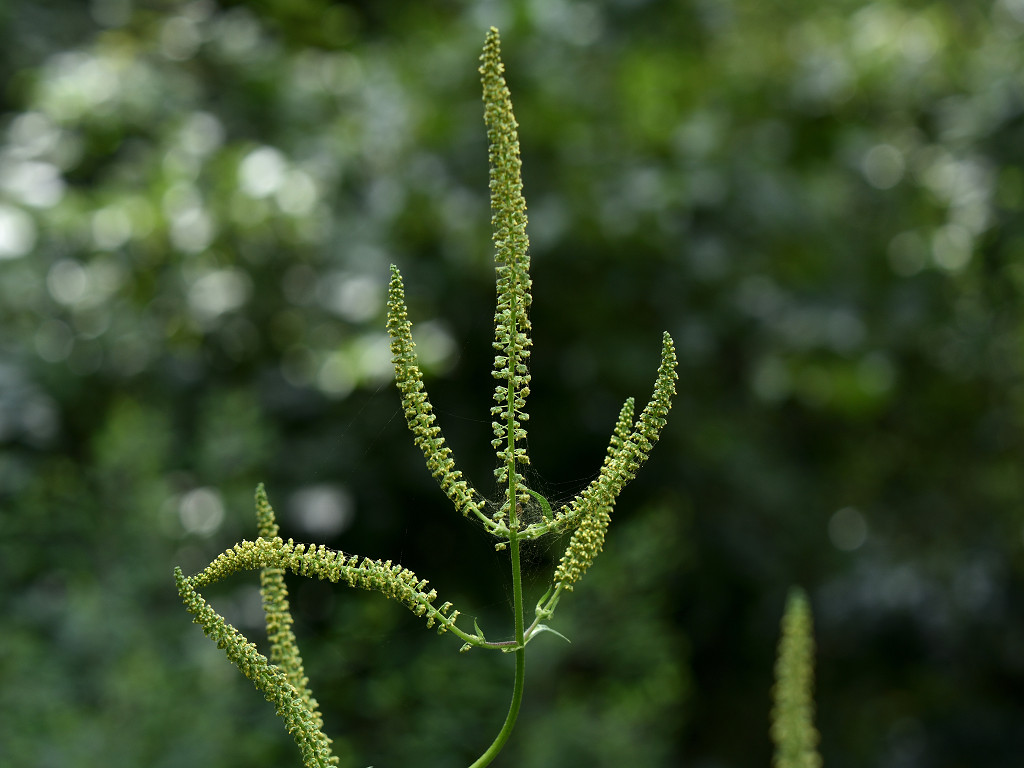 北米原産「Hogweed」を訳して付いた「ブタクサ」似ている。花姿が大形であることによい「オオ」が付く 葉の形が「クワ」に似ているので別名「クワモドキ」