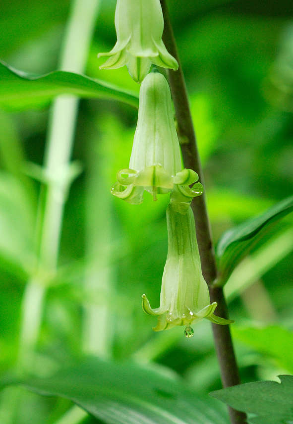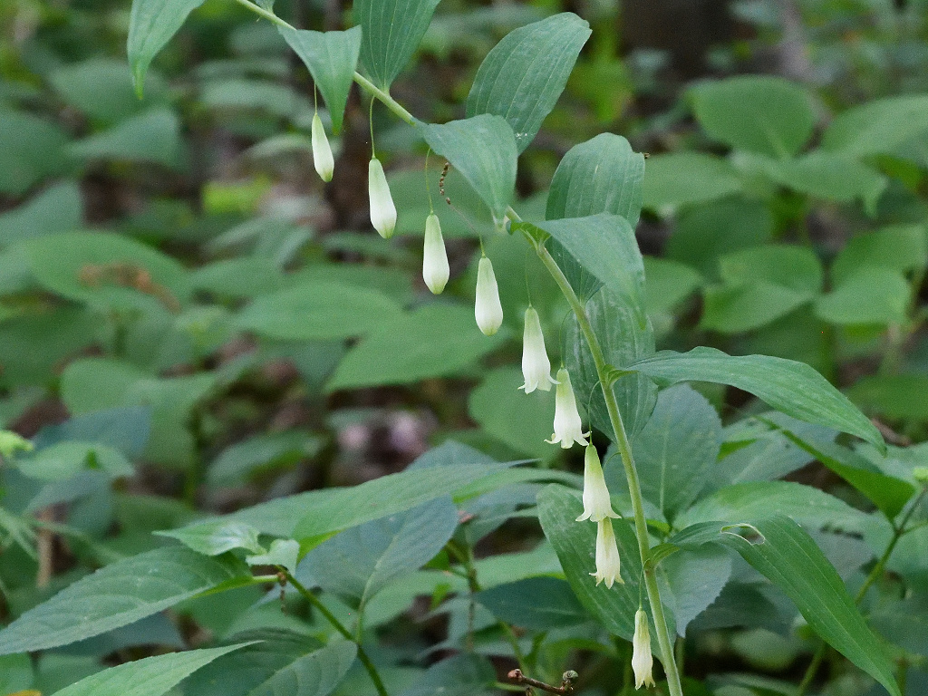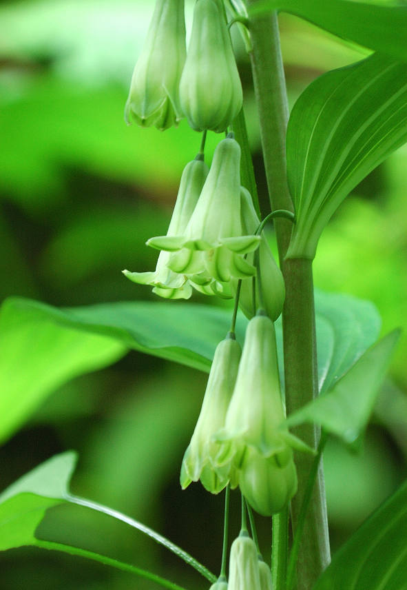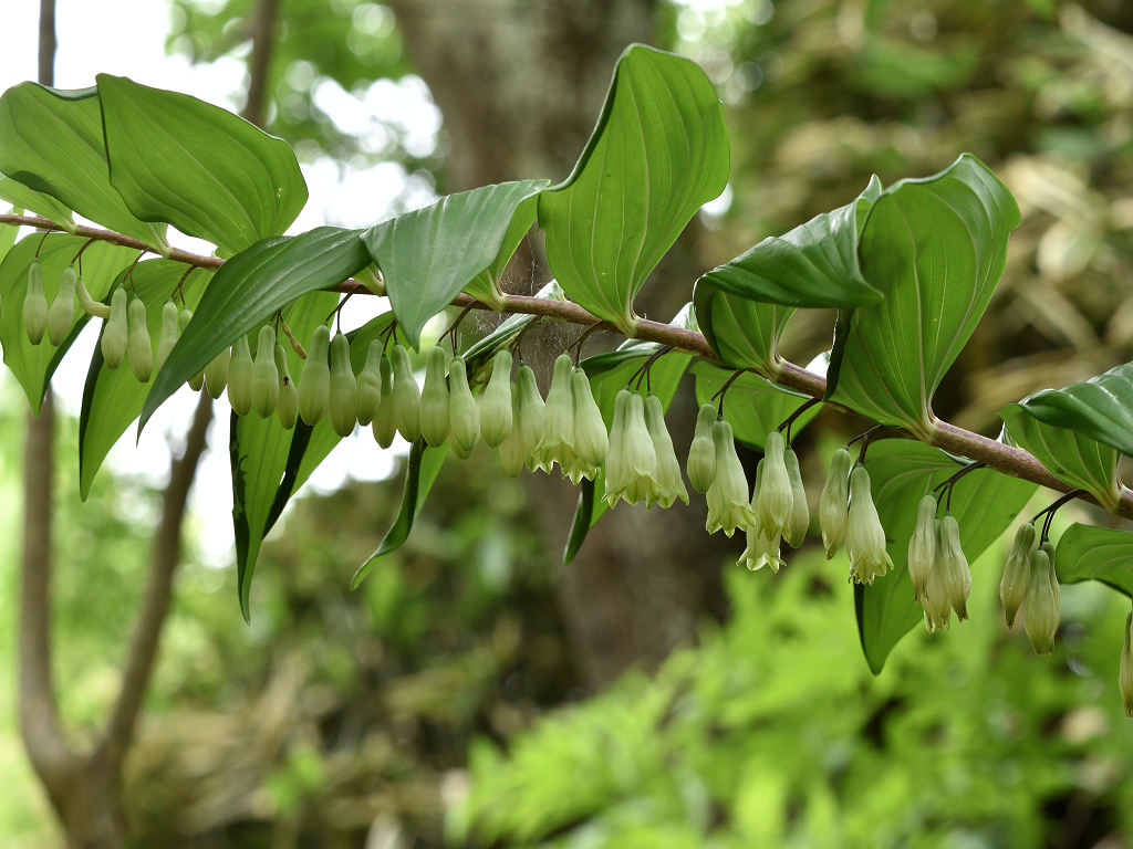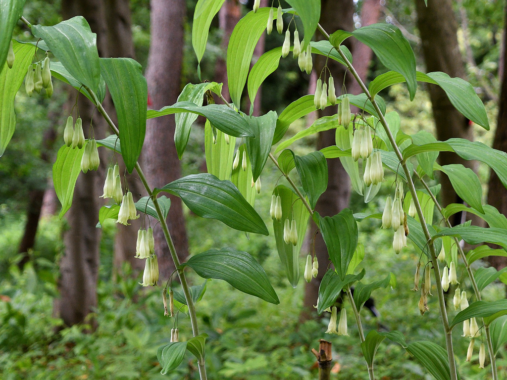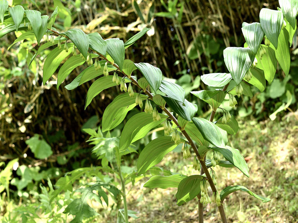 白色の花を3個ないし2個ずつ葉の付け根に下げる 草丈80−130p