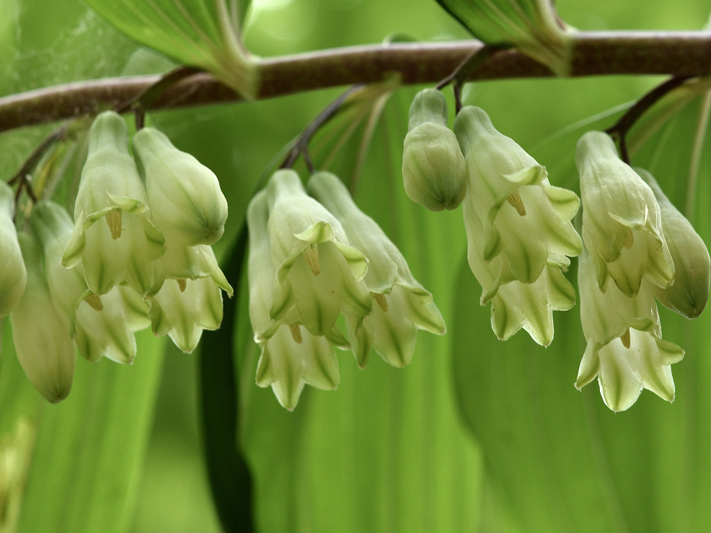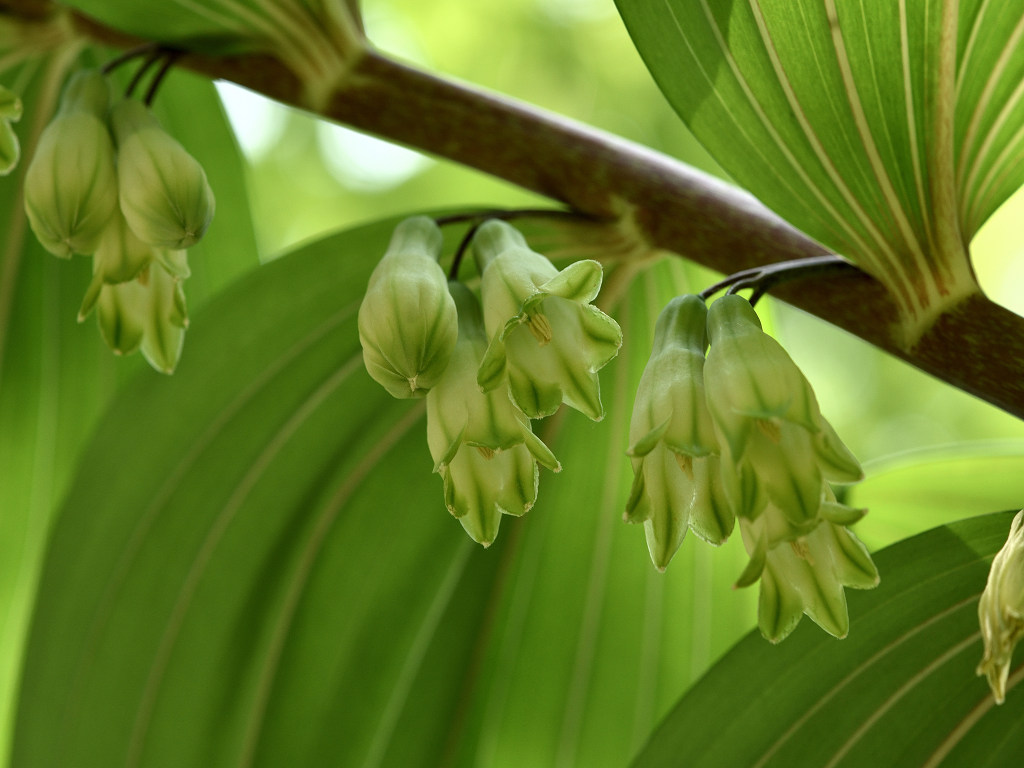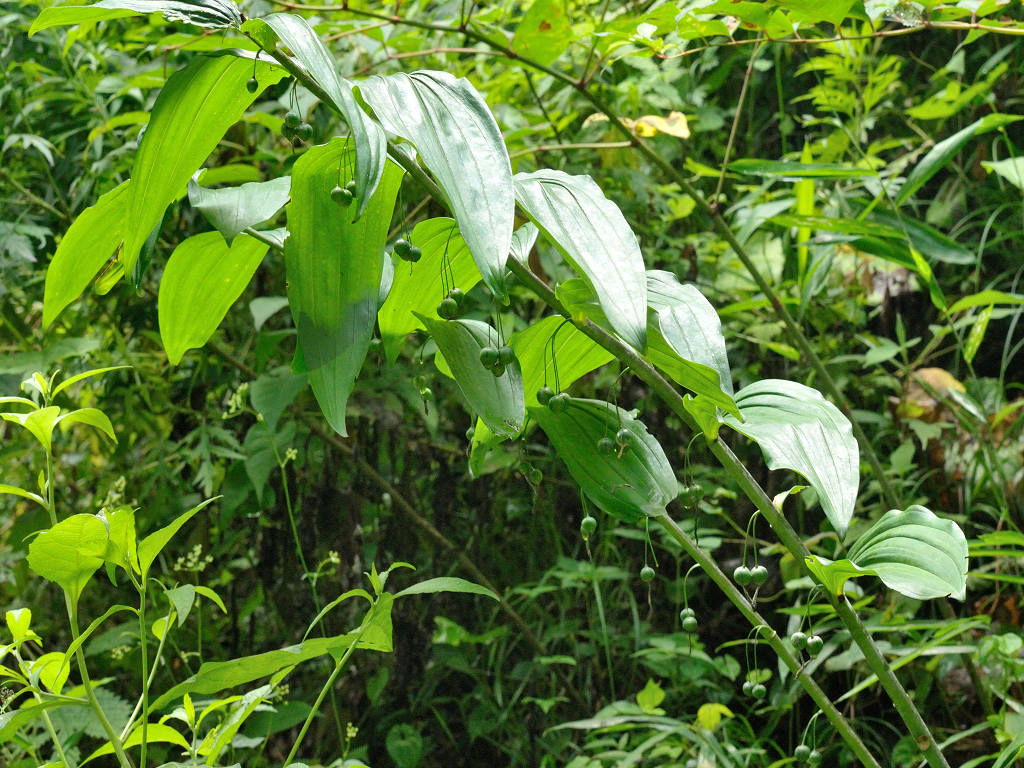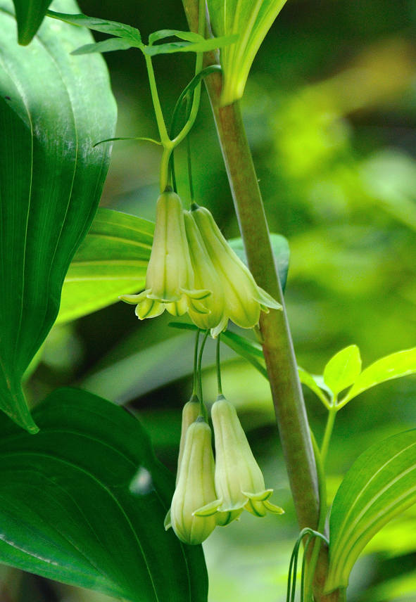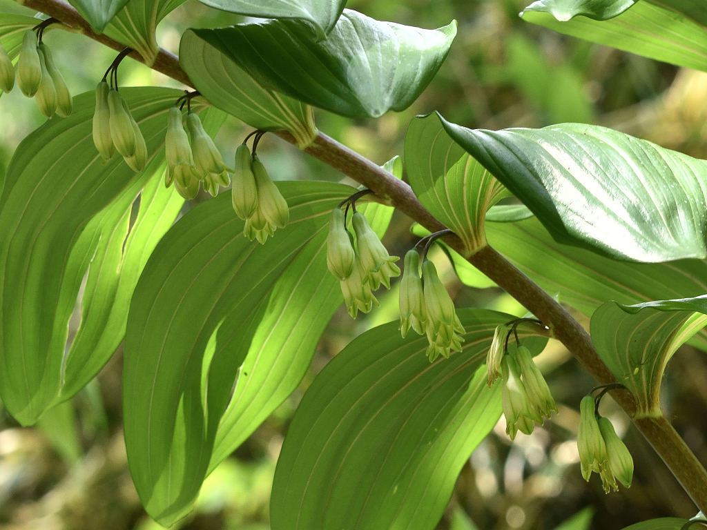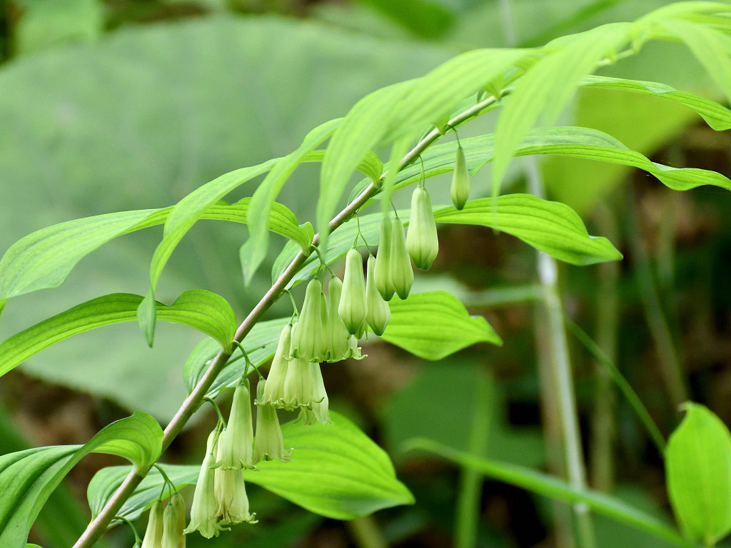 白色の花を3個ないし2個ずつ葉の付け根に下げる 草丈80−130p