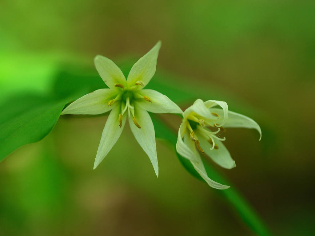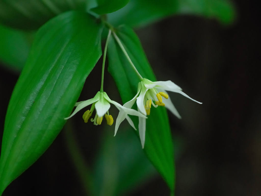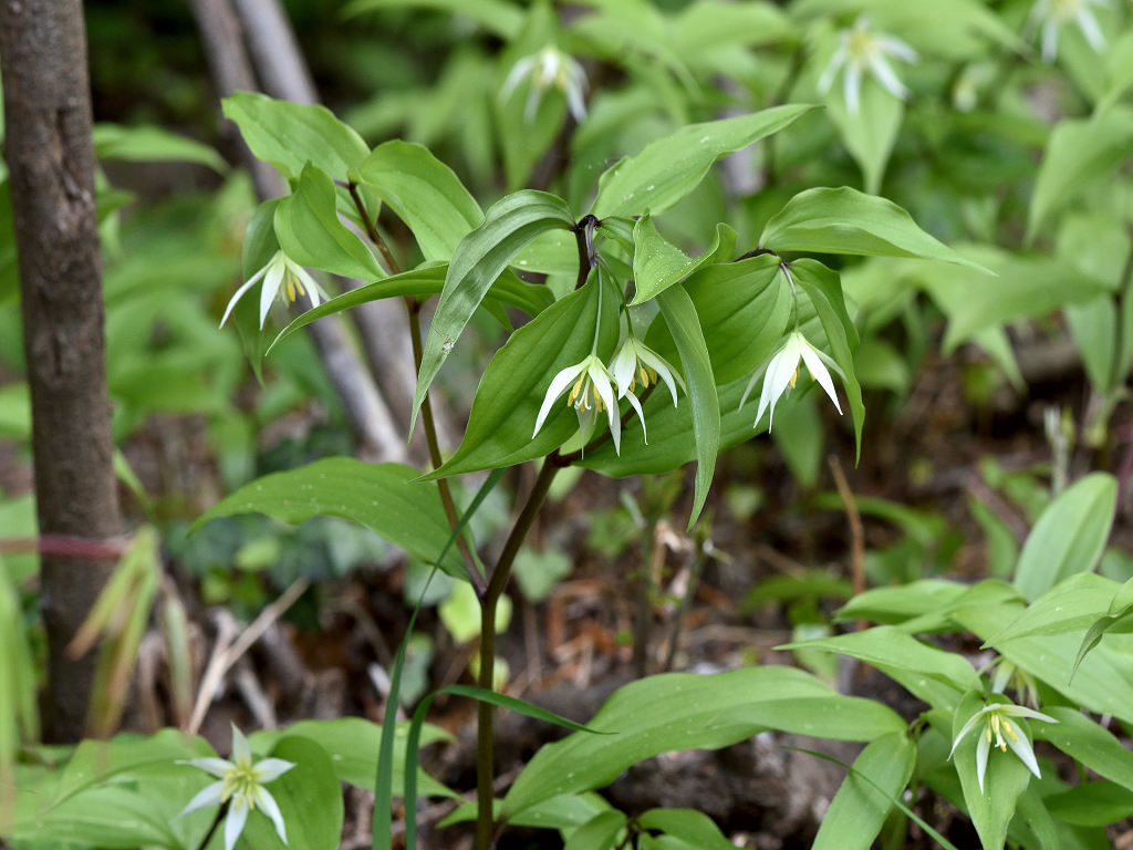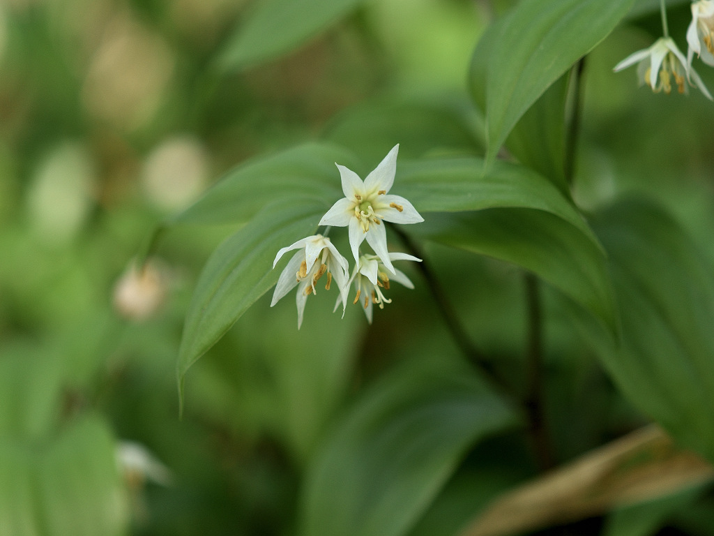 「チゴユリ」に似ているが、葉の大きさや草丈など、全てにおいて大型で、よく分枝する。雌しべの先は大きく裂け、花被片がやや緑色を帯びる