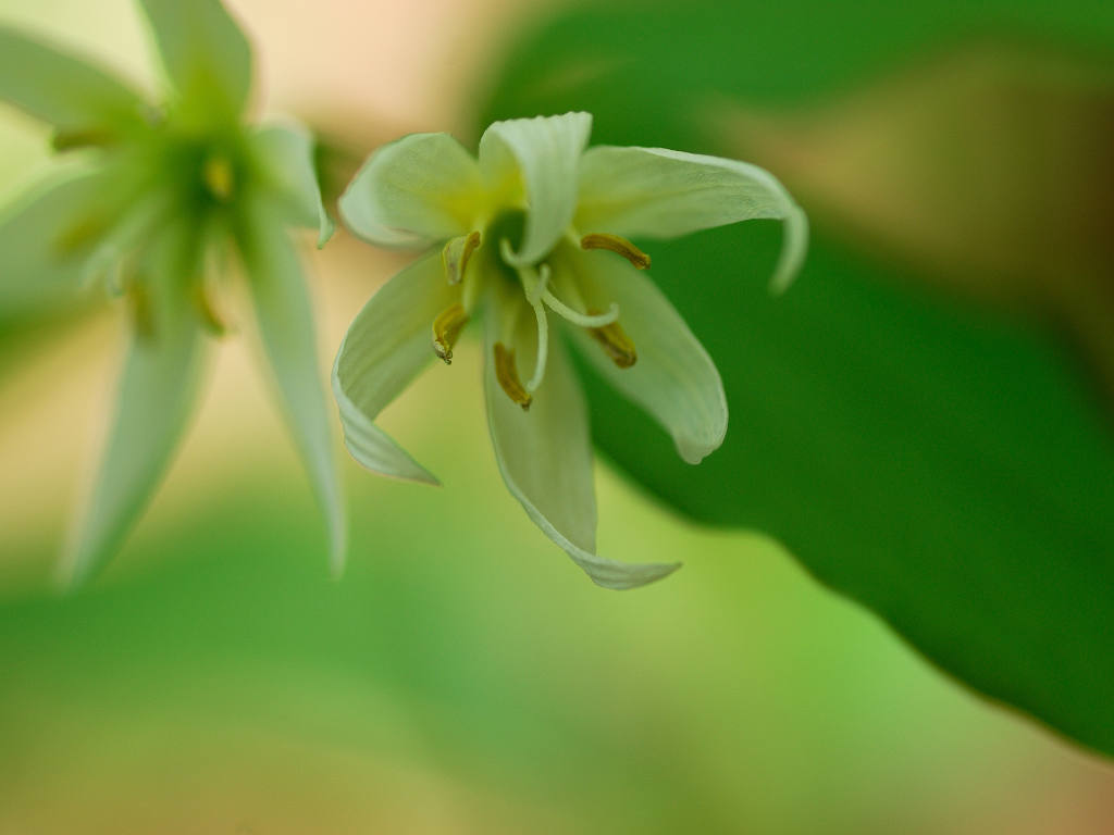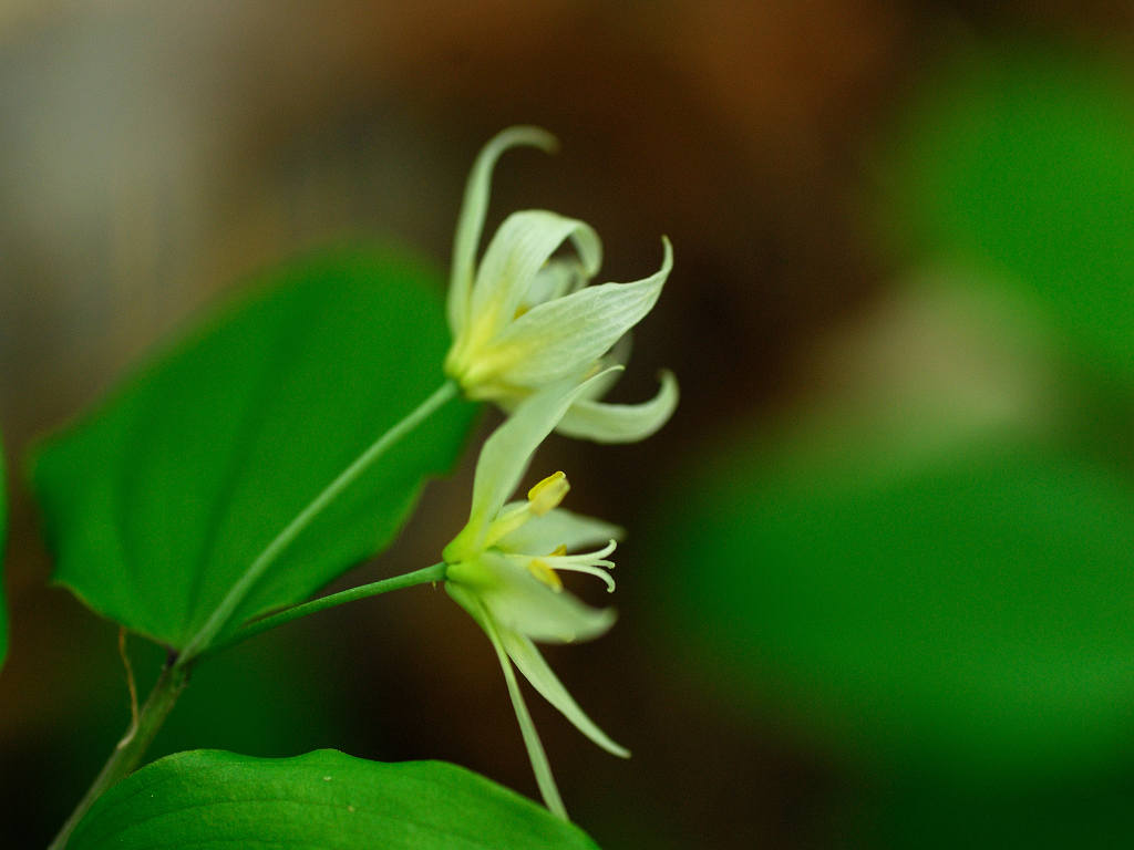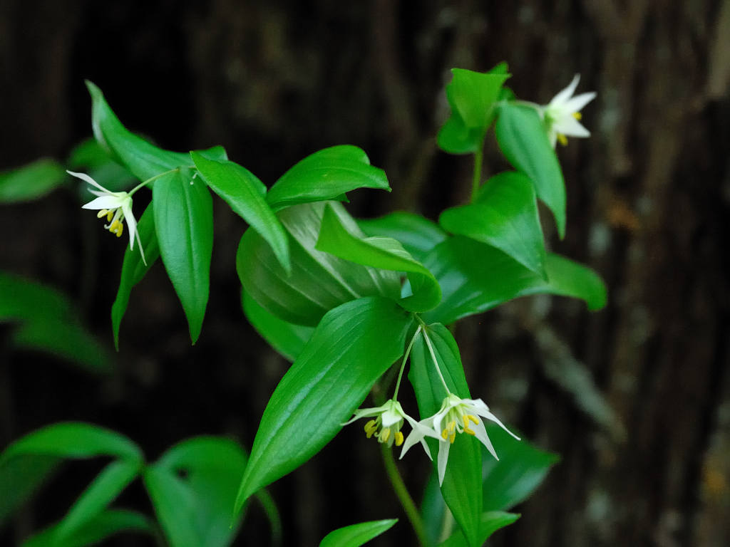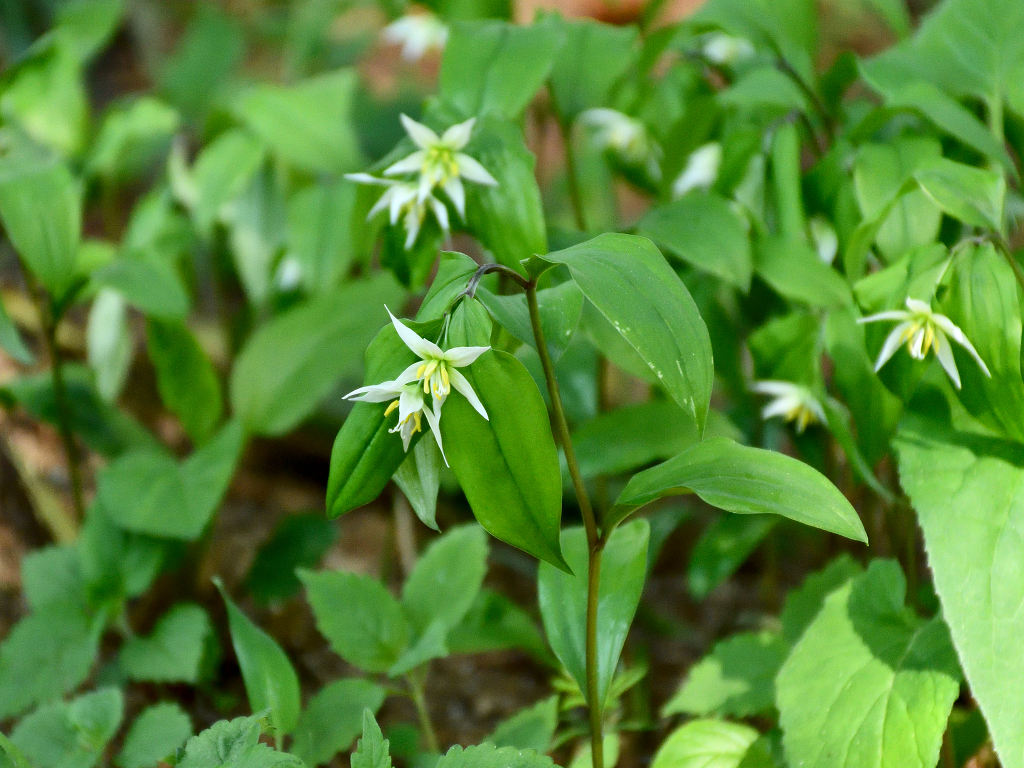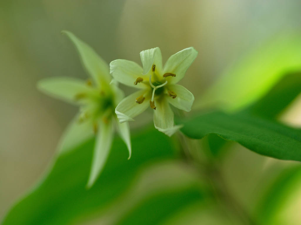 「チゴユリ」に似ているが、葉の大きさや草丈など、全てにおいて大型で、よく分枝する。雌しべの先は大きく裂け、花被片がやや緑色を帯びる