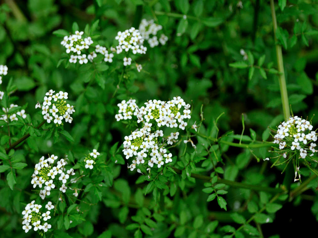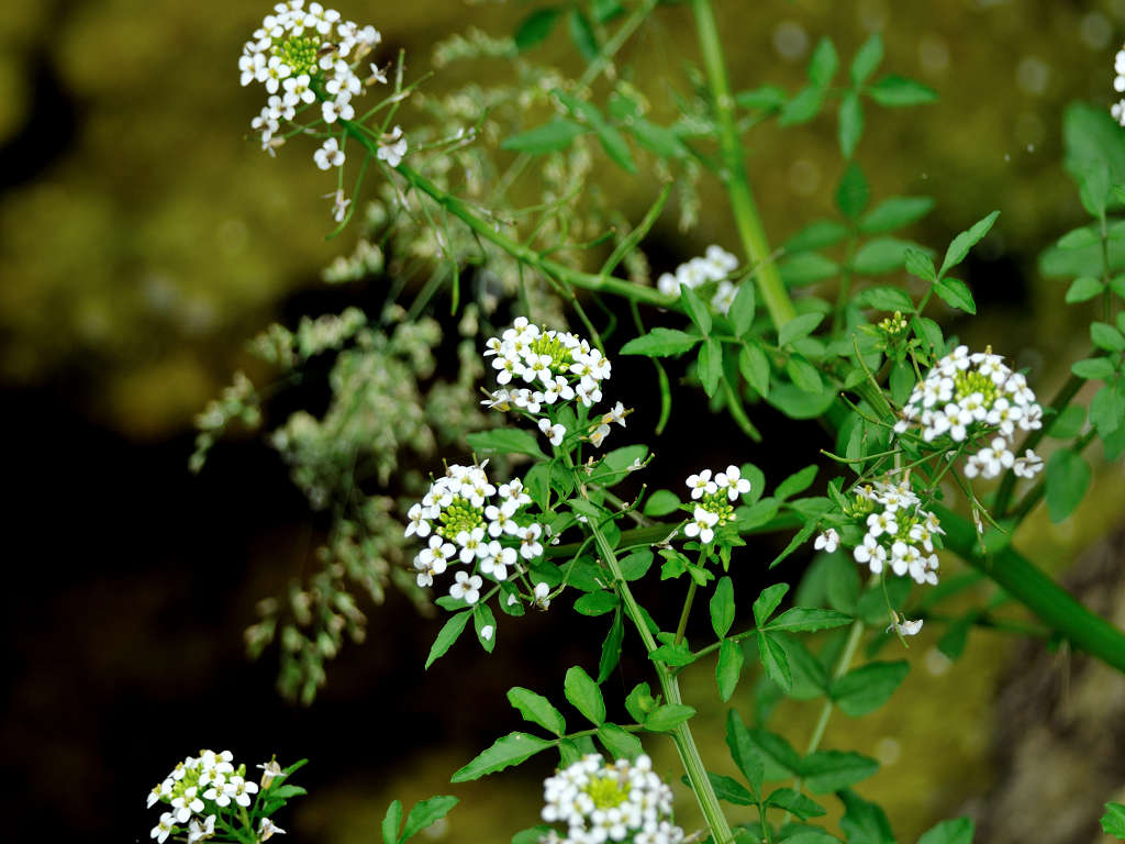 軽井沢などで栽培されていたものが野生化 花は白色で直径約6mm 葉は奇数羽状複葉