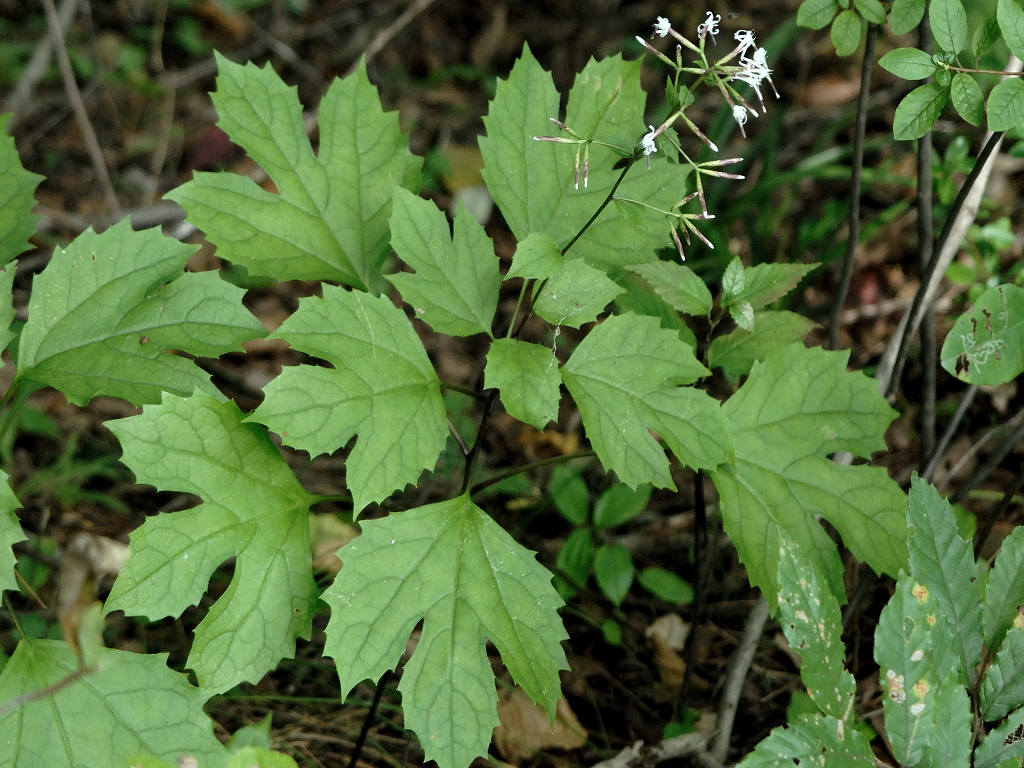 茎の上部に白色の頭花をつける.その頭花が槍の穂のように見えることから名づけられた.葉が三つに分裂する