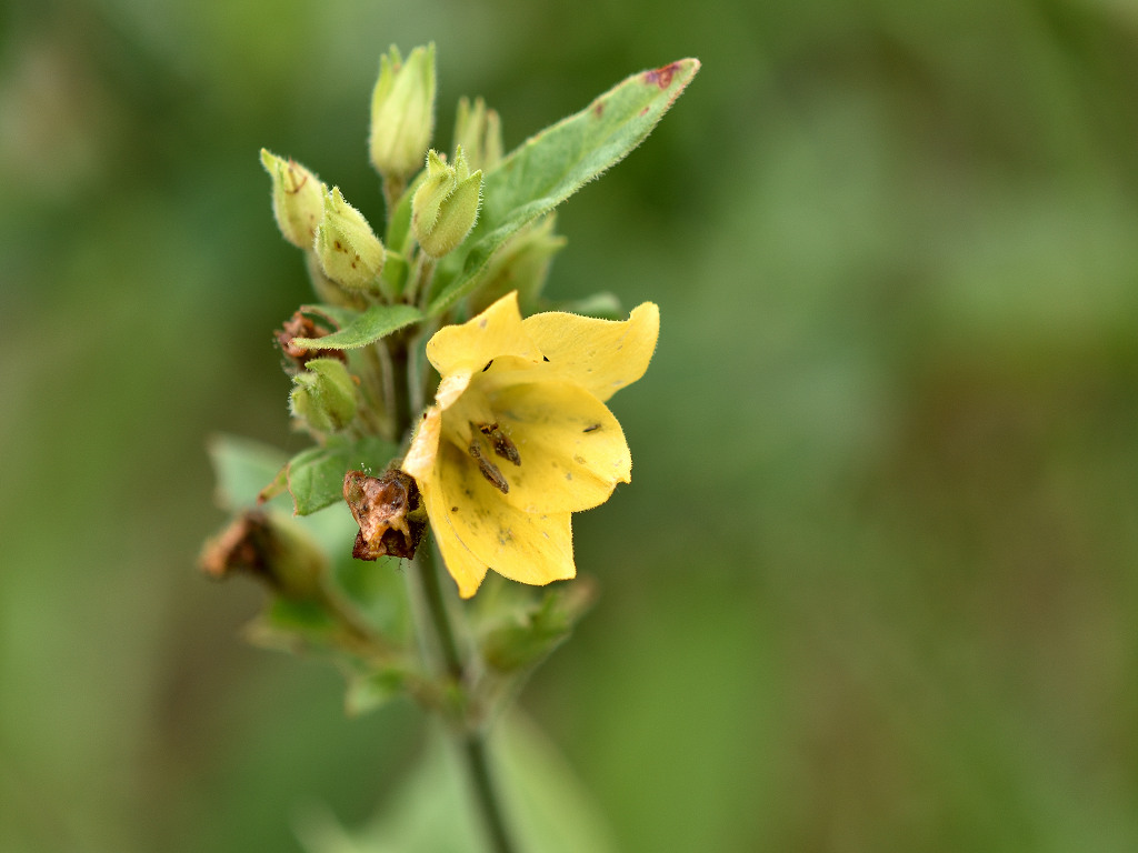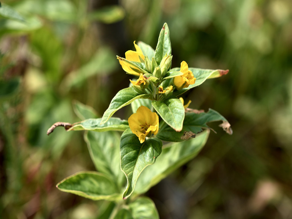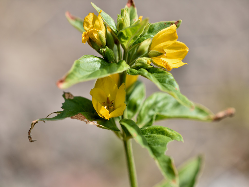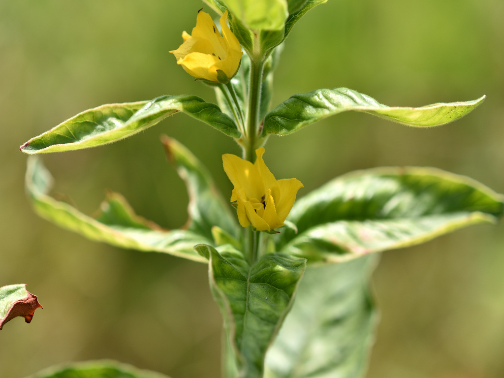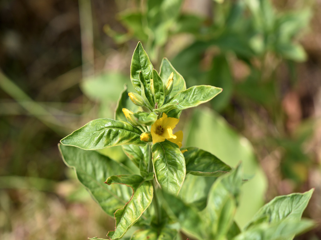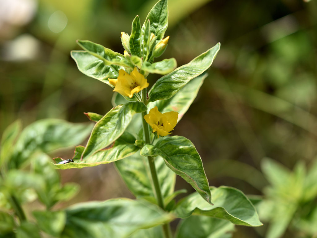 真直ぐ伸びた茎に星形の黄色い花を輪状につける