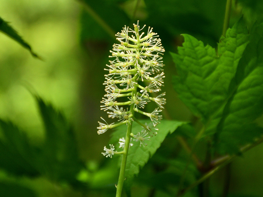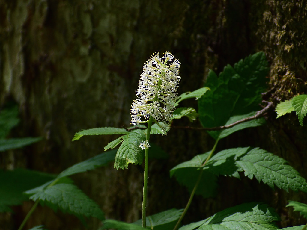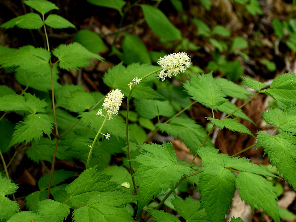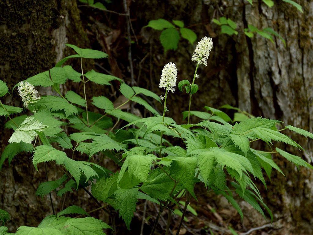 葉と分かれて花茎が伸び、頂上に円錐形の集合体の花を咲かせる