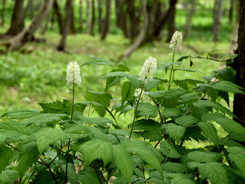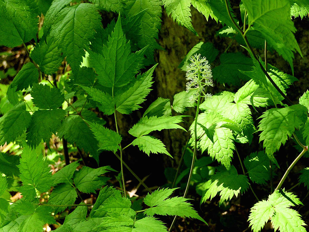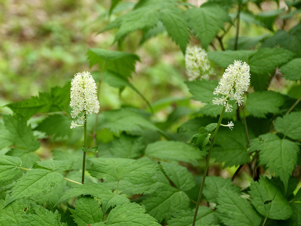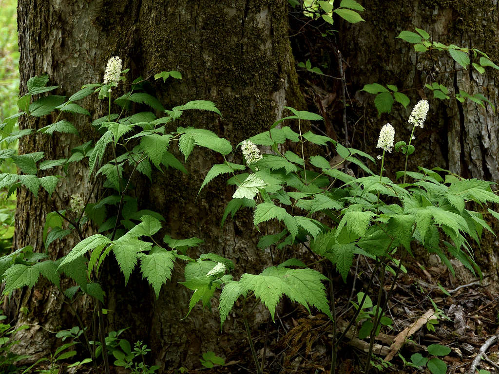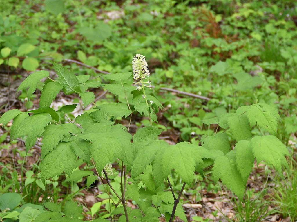 葉と分かれて花茎が伸び、頂上に円錐形の集合体の花を咲かせる