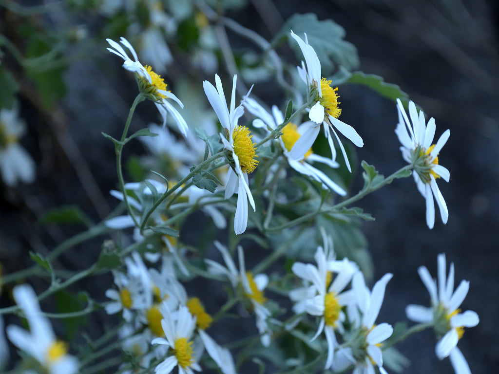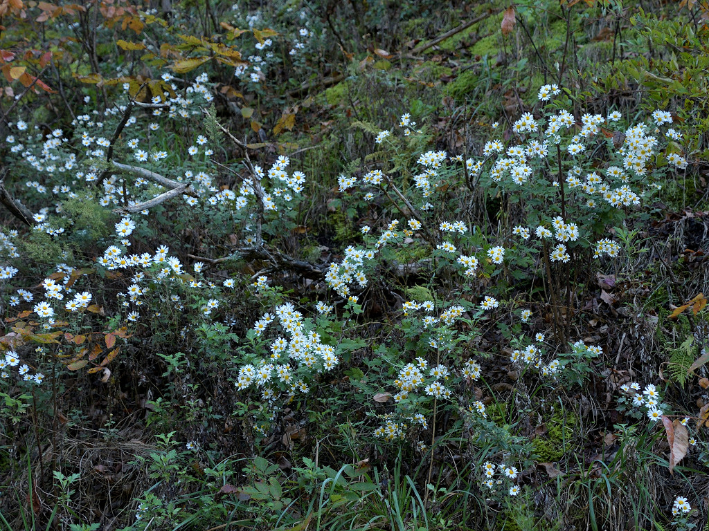 晩秋に花が咲く 茎が細くて垂れ下がる 葉は三つに裂け切れ込みは浅い、基部はくさび形 表面は緑色、裏面は白受けがあり白っぽく見える
