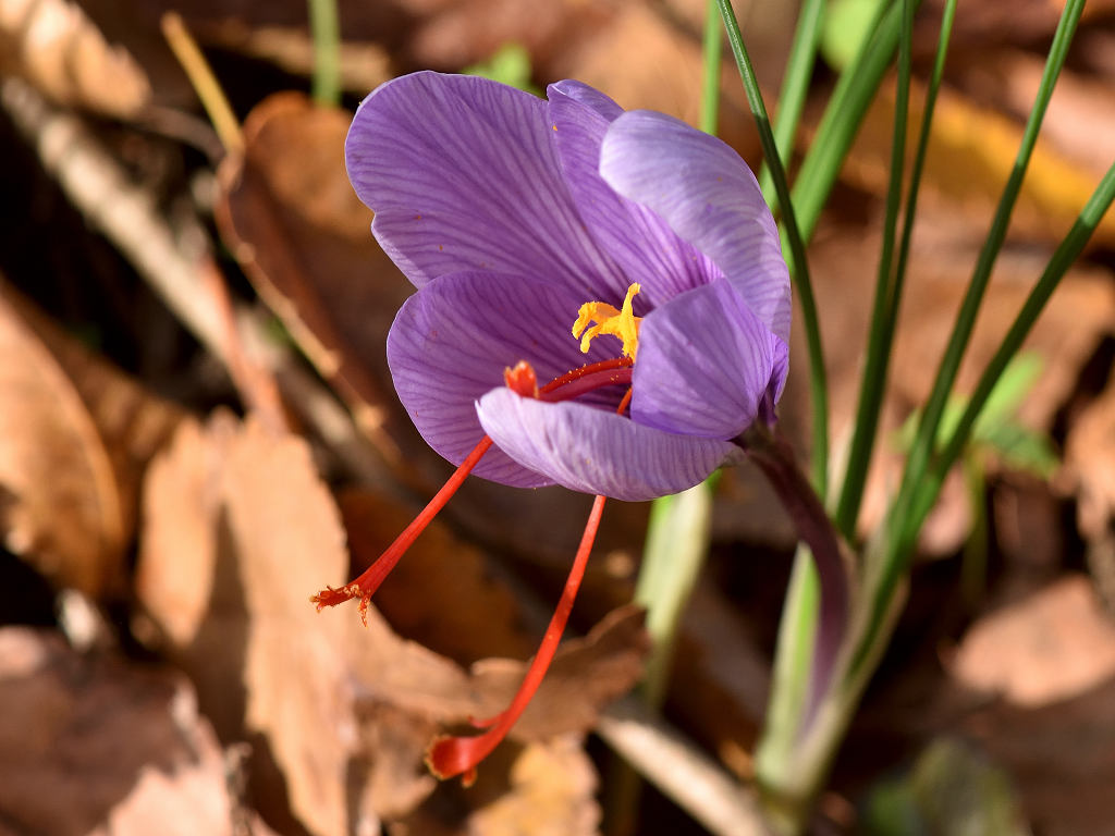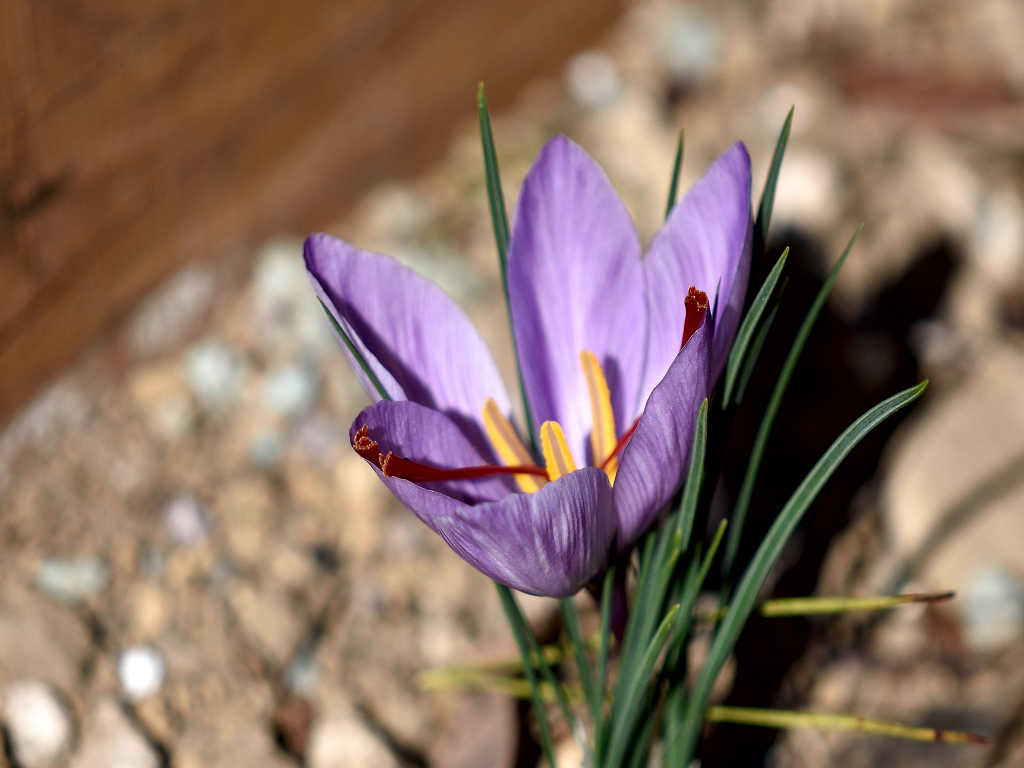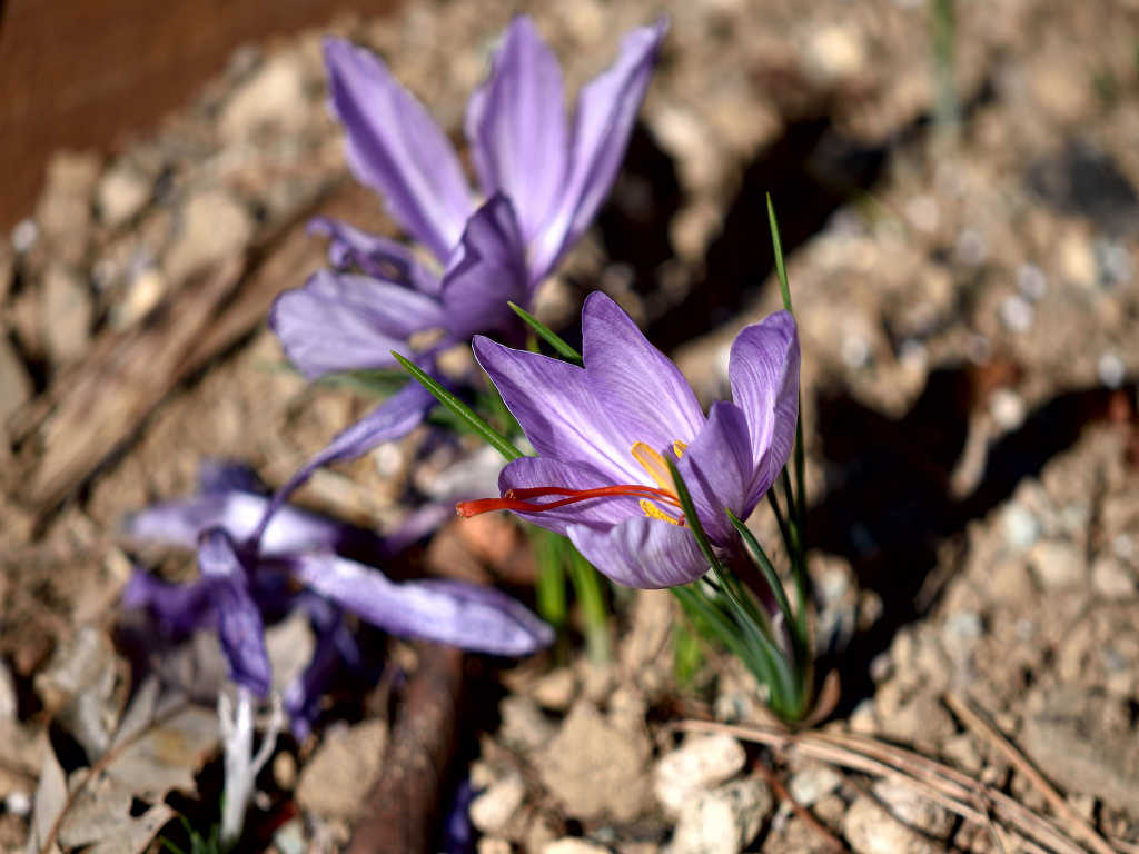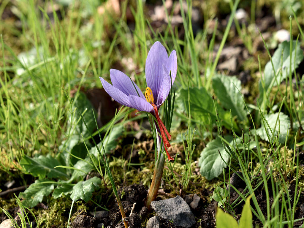 属名のクロッカスは、ギリシャ語でのサフランの呼び名、krokos(糸)に由来するとされ、いとじょうの雄しべにちなんでとされている