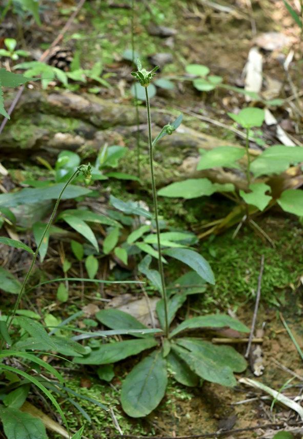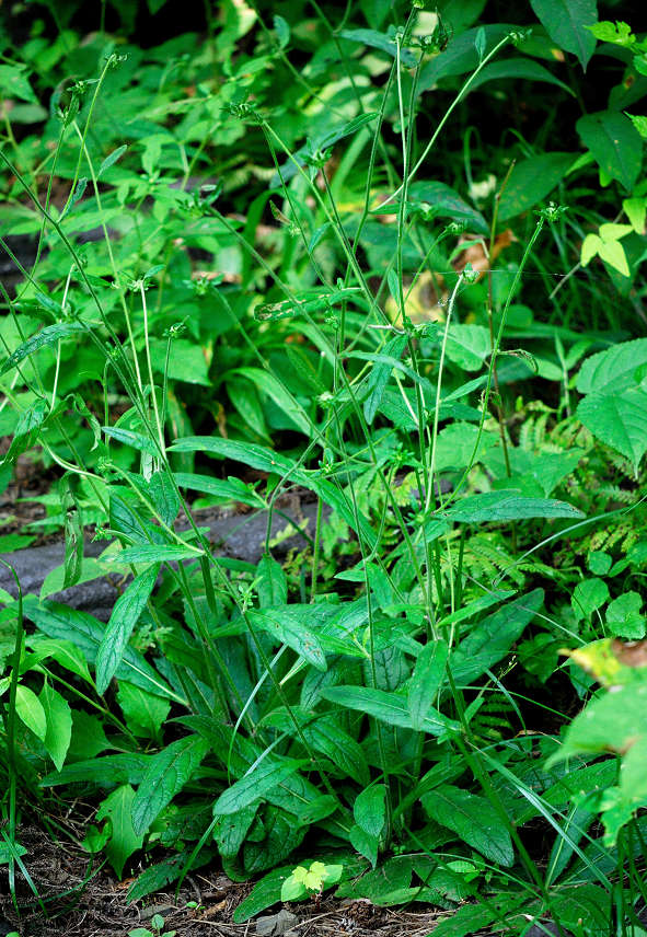 茎は直立し、分枝が少なく、上部は曲がり、開出毛が密につく 根生葉は花期にも残り、ロゼット状