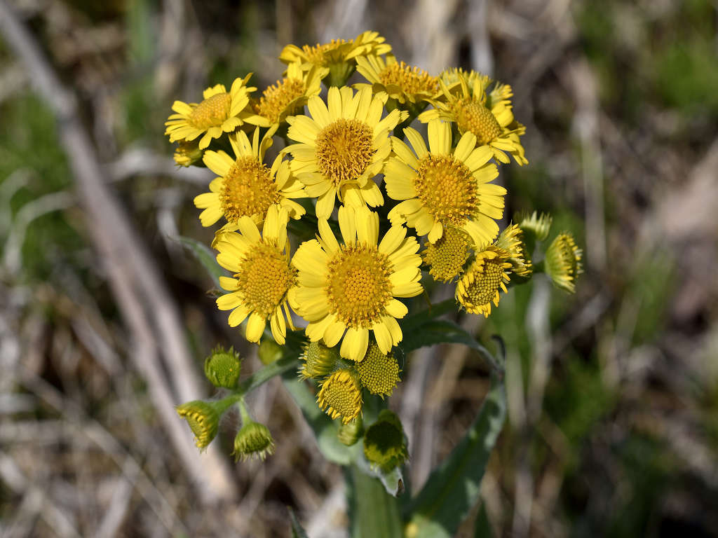 黄色い花 花弁は舌状花 中心部は盛り上がった筒状花