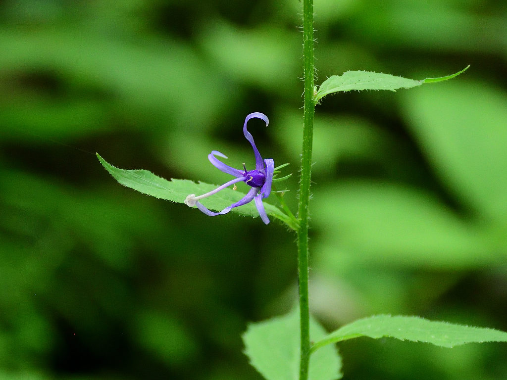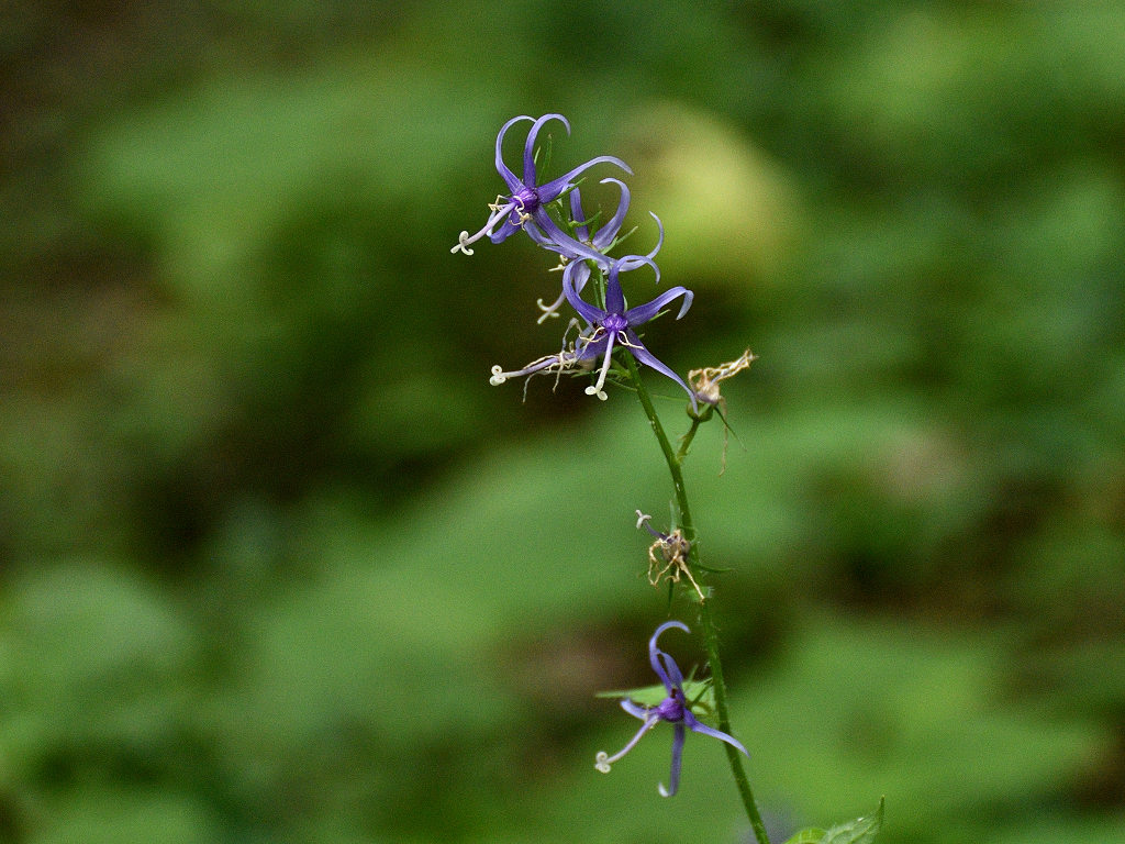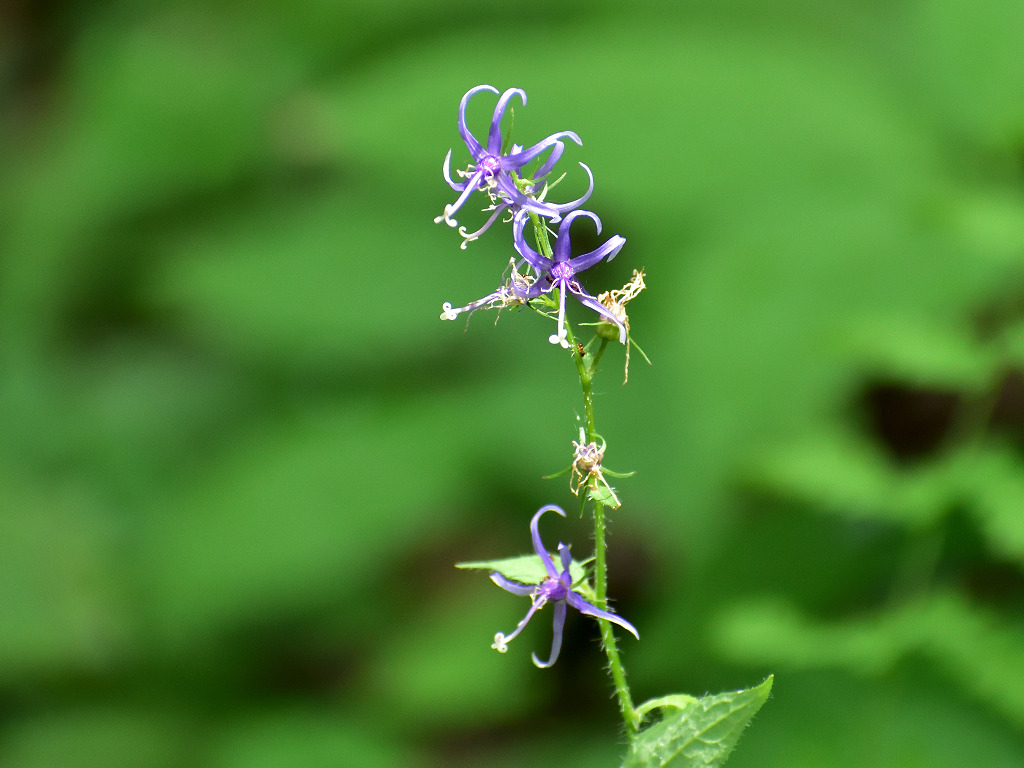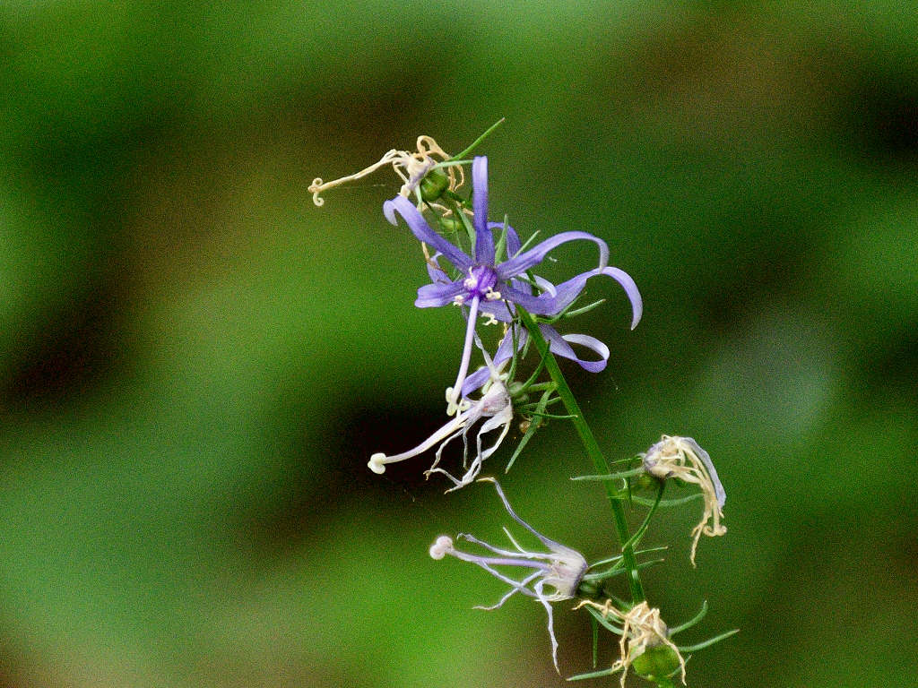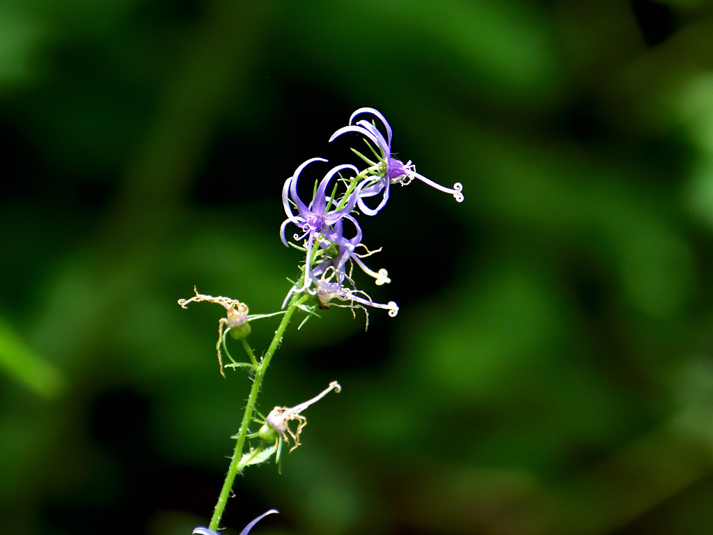 花びらは深く5裂し、細くて長くカールしている。中央に長い花柱がある